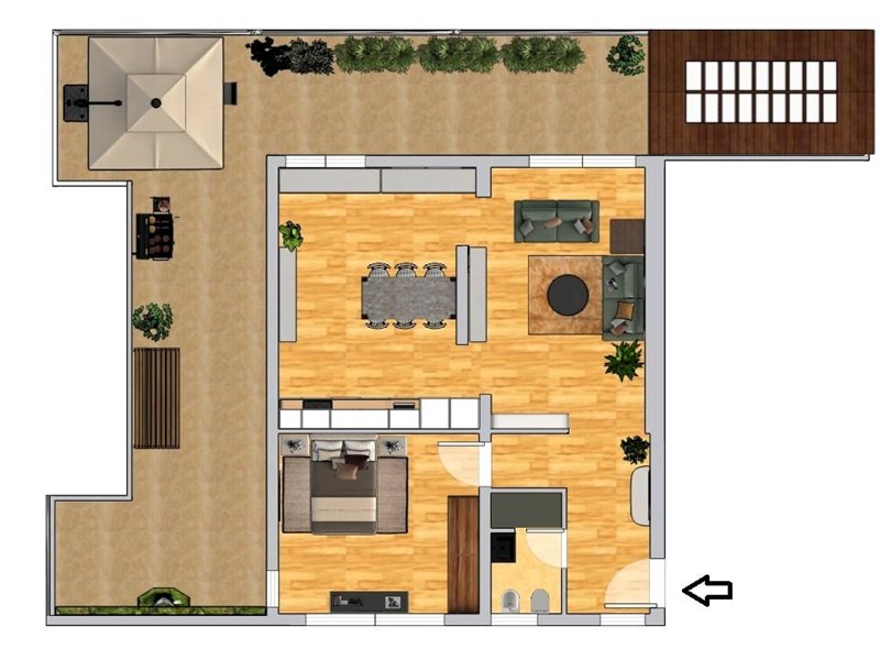 L'immobile al piano attico è composto da un ingresso, un salone grande, cucina abitabile, disimpegno bagno e terrazzo.