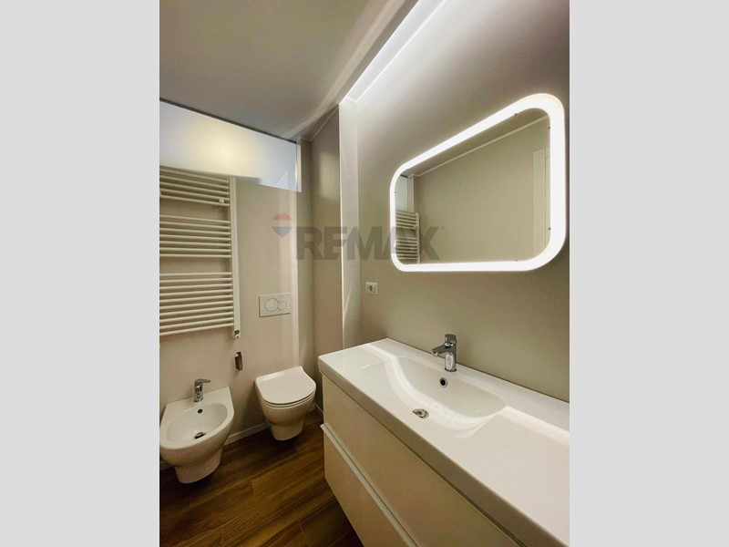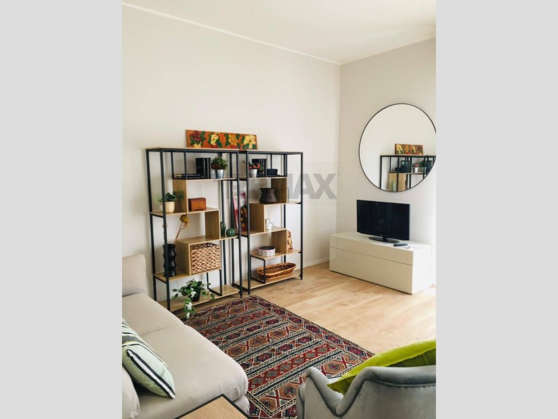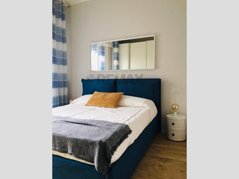 L'appartamento di tre locali è composto da un luminoso soggiorno con cucina a vista, una camera da letto matrimoniale, la seconda camera ora adibita a studio/cabina armadio, un bagno finestrato ed un secondo bagno ambedue con ampia doccia. I pavimenti sono in parquet ovunque, limmobile è dotato di impianto di condizionamento a split nel soggiorno e nelle camere, serramenti in pvc con doppi vetri, videocitofono, impianto di riscaldamento a radiatori con termostato e contabilizzatore dei consumi.