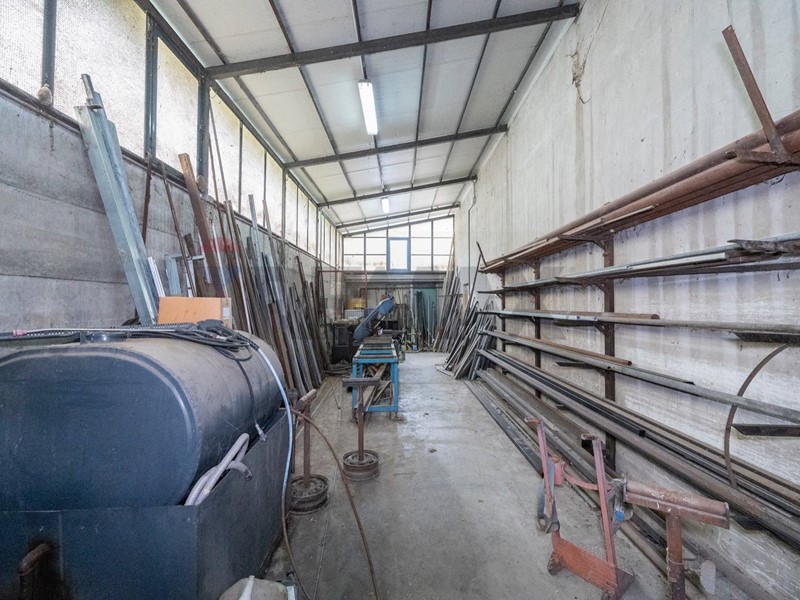 lavorazione del ferro, due uffici più una zona archivio, bagno per gli uffici e spogliatoi e bagni