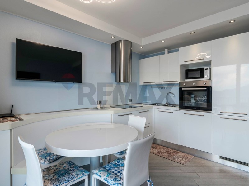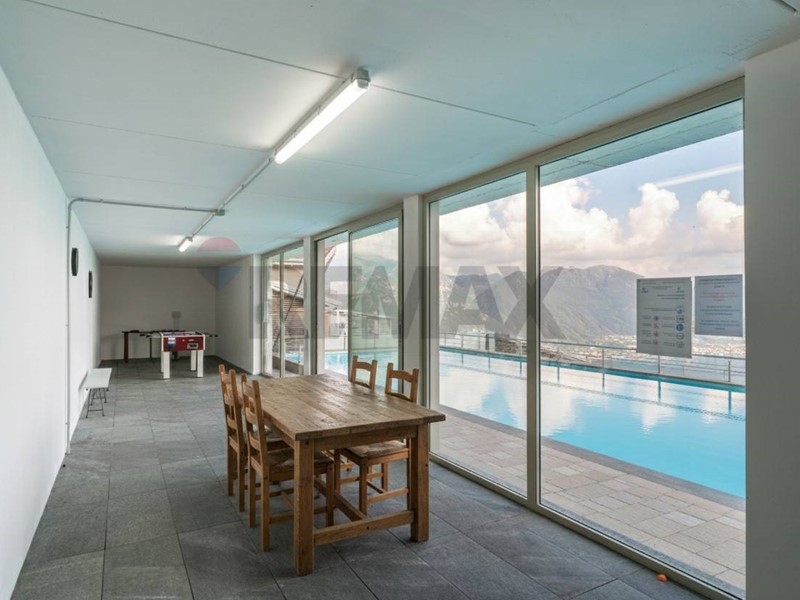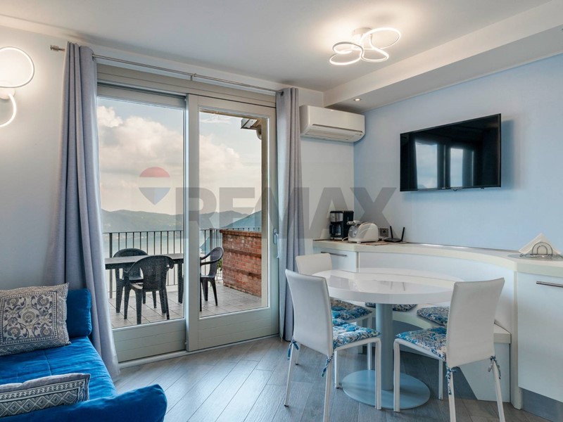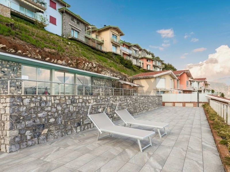 La soluzione è stata completata nel 2019 e vanta una vista panoramica sul Lago grazie all'ampia vetrata e alla porta finestra che danno sul terrazzo esclusivo e sul giardino di proprietà.