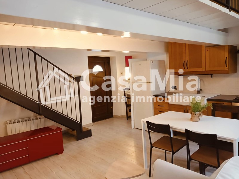 L'appartamento si raggiunge da una scala interna alla corte, dove l'accesso è preceduto da un piccolo ballatoio comune ma di utilizzo proprio. La porta blindata d'accesso accoglie la zona giorno con parete cottura e zona living con arredo TV posizionato sotto la scala a giorno che conduce alla zona notte, sviluppata su un soppalco in legno, regolarmente concessionato, ove è presente un letto matrimoniale, mobile guardaroba e cassettiera. Il bagno, al piano soppalcato è dotato di doccia in muratura e completo di tutti i sanitari ed è compreso di lavatrice con caricamento dall'alto. I serramenti sono in legno con doppio vetro con zanzariere e persiane in pvc.