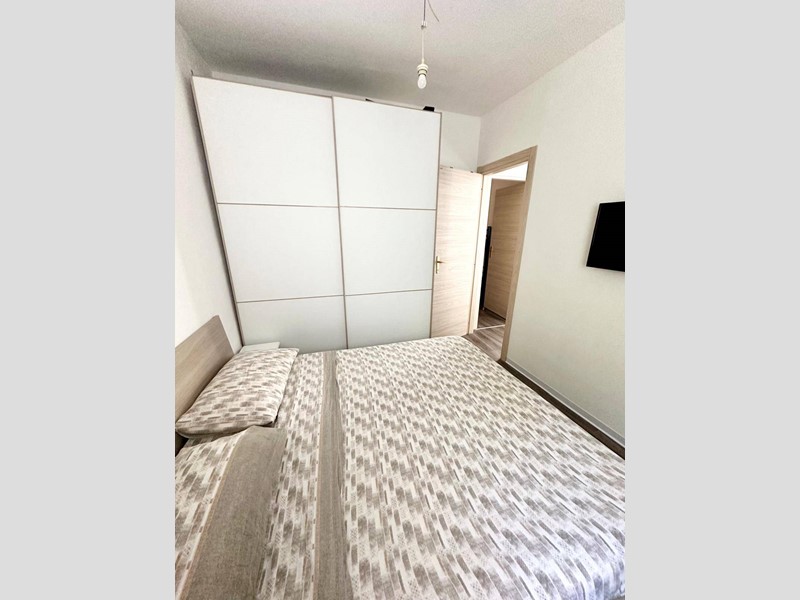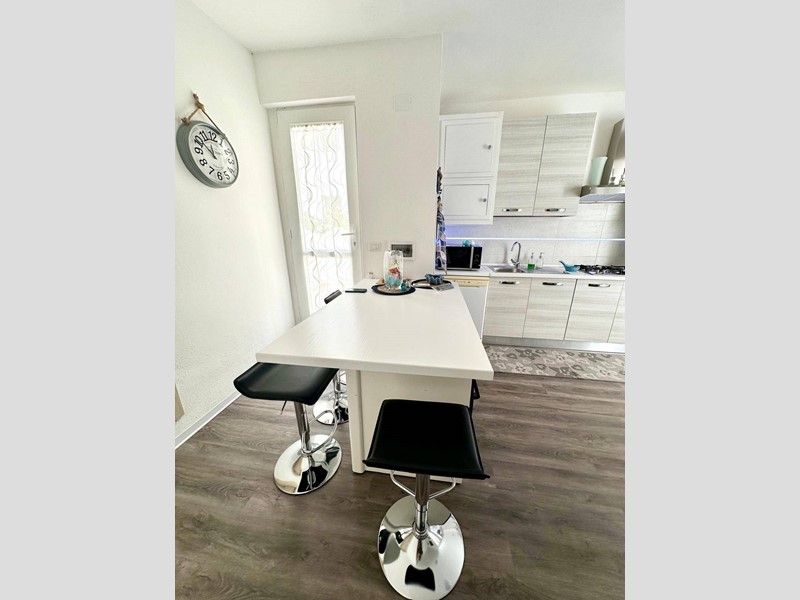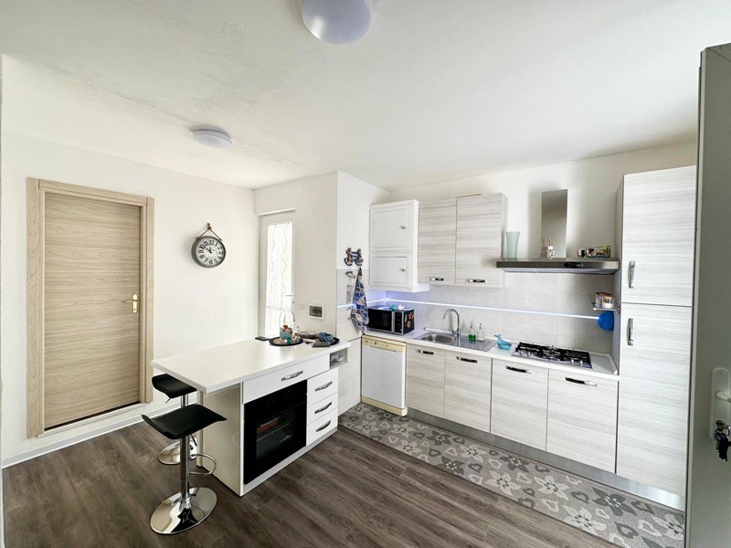 La cucina è completamente arredata con mobili moderni e funzionali. L'appartamento è composto da quattro locali, di cui due camere da letto spaziose e luminose, perfette per ospitare una famiglia o per creare uno spazio privato per gli ospiti.