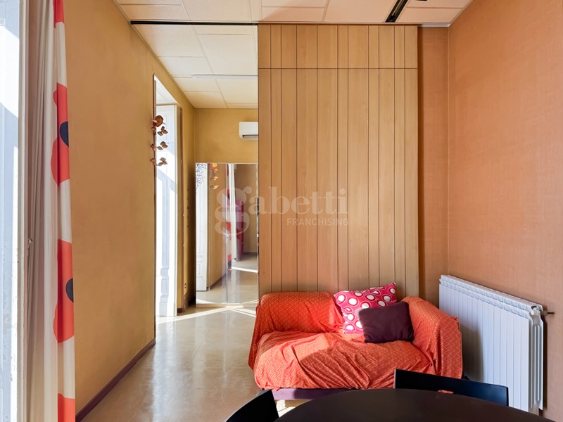 L'appartamento, da ristrutturare, è composto da un ingresso che introduce successivamente a un salone molto ampio, ideale per momenti di rappresentanza e convivialità. La zona notte comprende due camere da letto, ben dimensionate e luminose. Completano la proprietà una cucina separata, un bagno e una lavanderia.