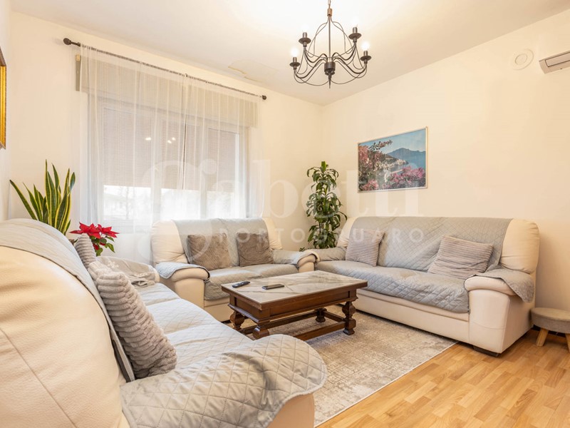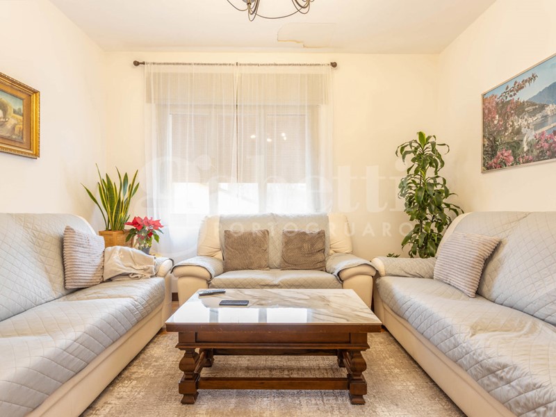 La zona giorno è composta da una cucina abitabile e da un soggiorno ampio, luminoso e particolarmente accogliente, ideale da vivere in famiglia o per ricevere ospiti. La zona notte si articola in una camera matrimoniale, una camera doppia e una terza camera singola ricavata successivamente, perfetta come studio, stanza per ragazzi o locale multiuso. Completa il livello un bagno finestrato.