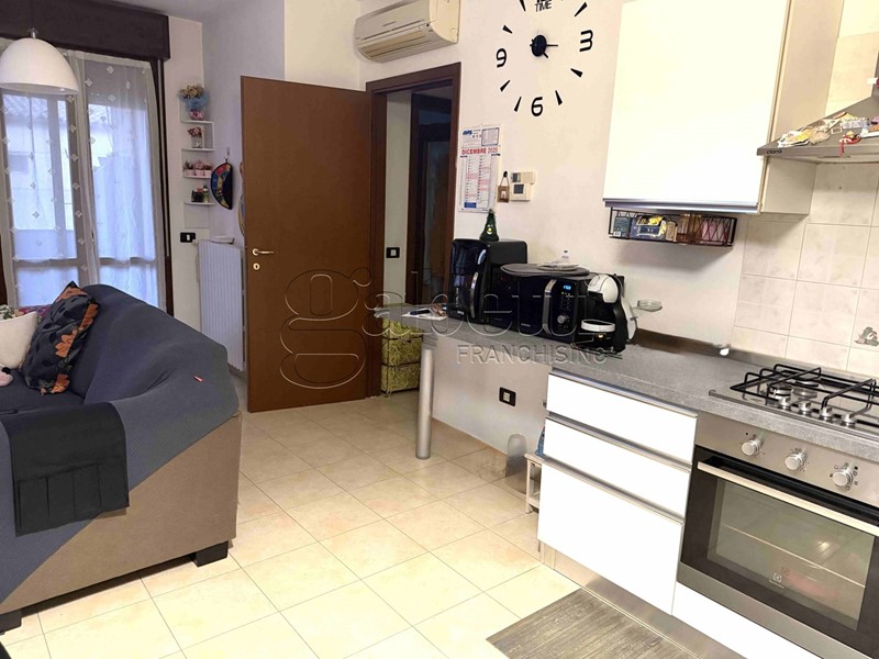 In zona centrale e servita, all'interno di palazzina di recente costruzione in pietra a vista, proponiamo luminoso appartamento con ingresso su soggiorno e cucina a vista, disimpegno, due camere da letto, bagno, loggia e ampio garage.