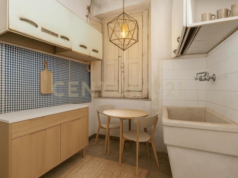 L’appartamento, interamente da ristrutturare, è composto da cucina, bagno, due vani, oltre a ripostiglio, offrendo interessanti possibilità di personalizzazione degli spazi interni in base alle proprie esigenze.
