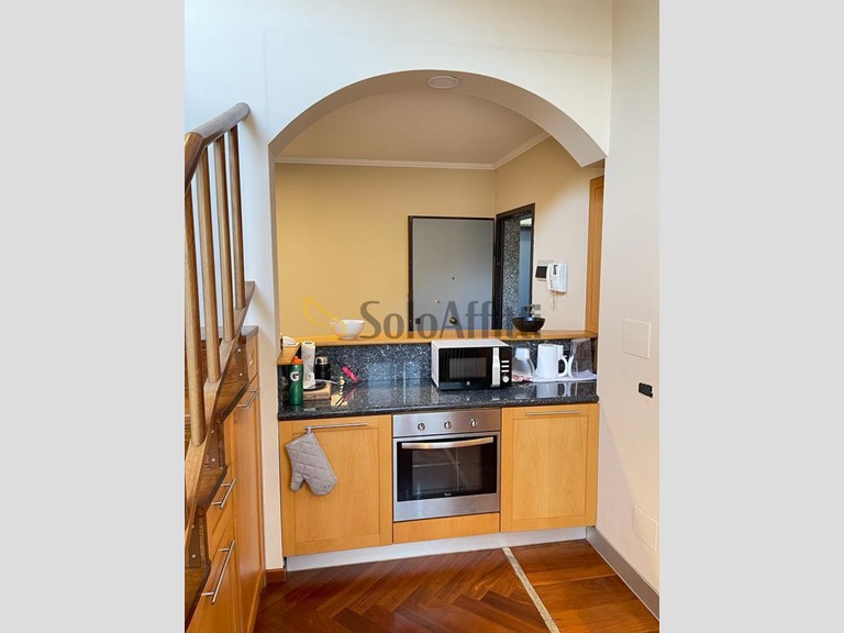 Gallarate. Zona Centro. In bella corte d'epoca ristrutturata proponiamo particolare TRILOCALE, completamente arredato, composto da ingresso, soggiorno con cucina a vista, bagno con doccia ed al piano superiore soppalco con salottino a vista sulla zona giorno e zona notte con due camere da letto ed ampio bagno con vasca angolare. Tutto parquet, dotato di lavatrice, asciugatrice, lavastoviglie, tende da sole. Ottime rifiniture. Riscaldamento autonomo e climatizzatore. Dotato altresì di grande box auto con basculante automatizzata al piano interrato. Classe energetica E - 130.45 kwh/mqa. Canone mensile euro 1.400,00 spese condominiali incluse. Rif. 1044