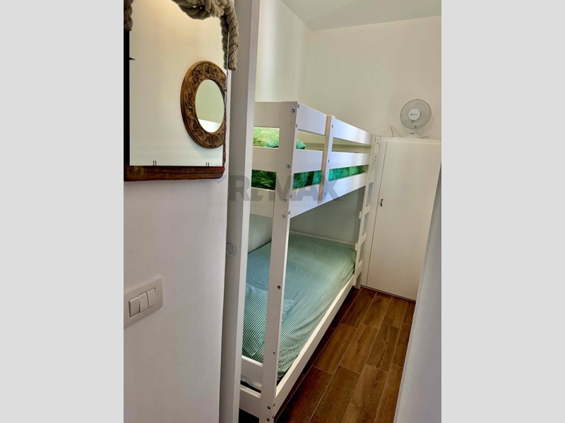 Dispone di un soggiorno con cucina a vista, una camera da letto matrimoniale, una piccola cameretta con letto a castello e bagno.