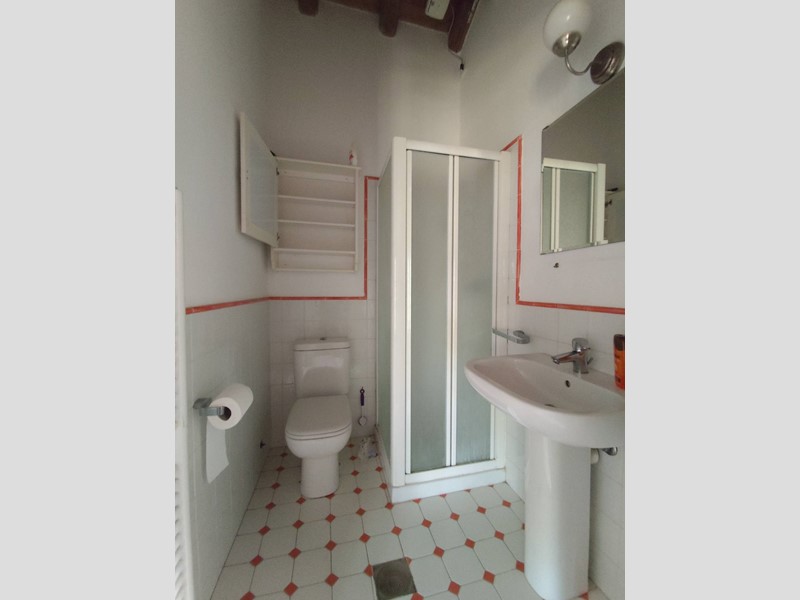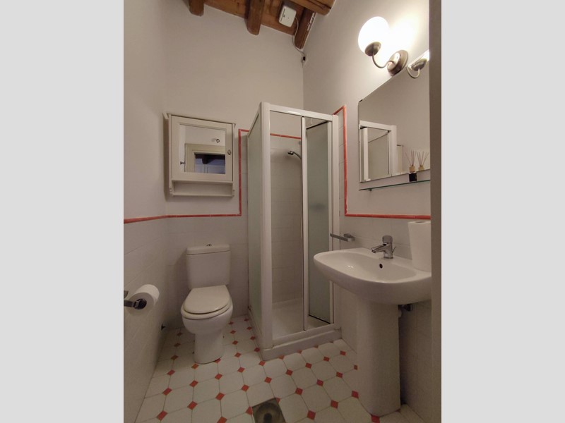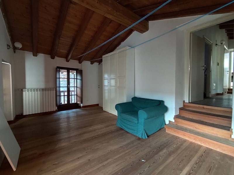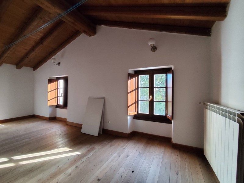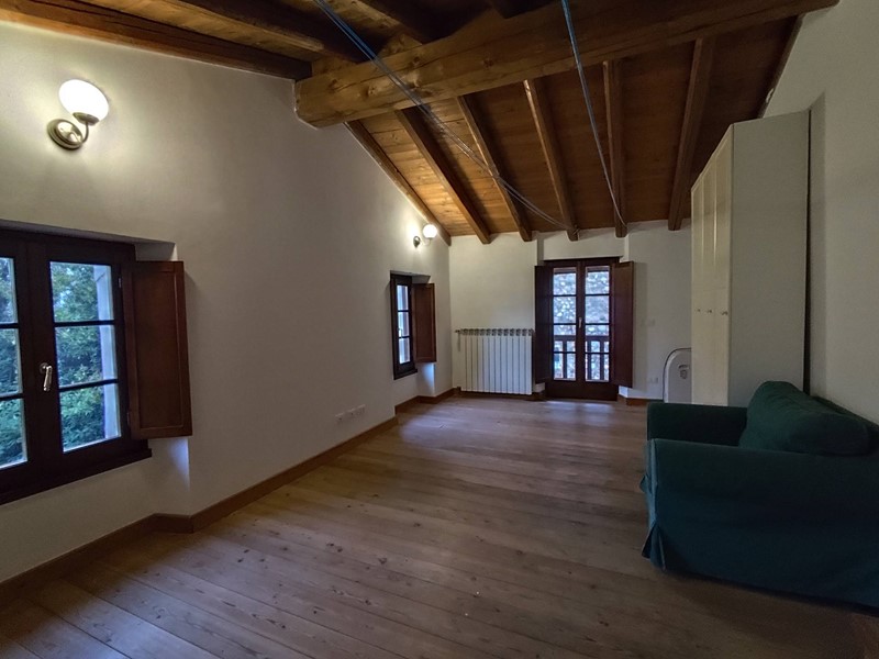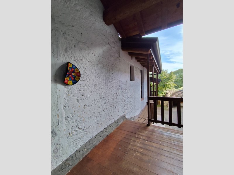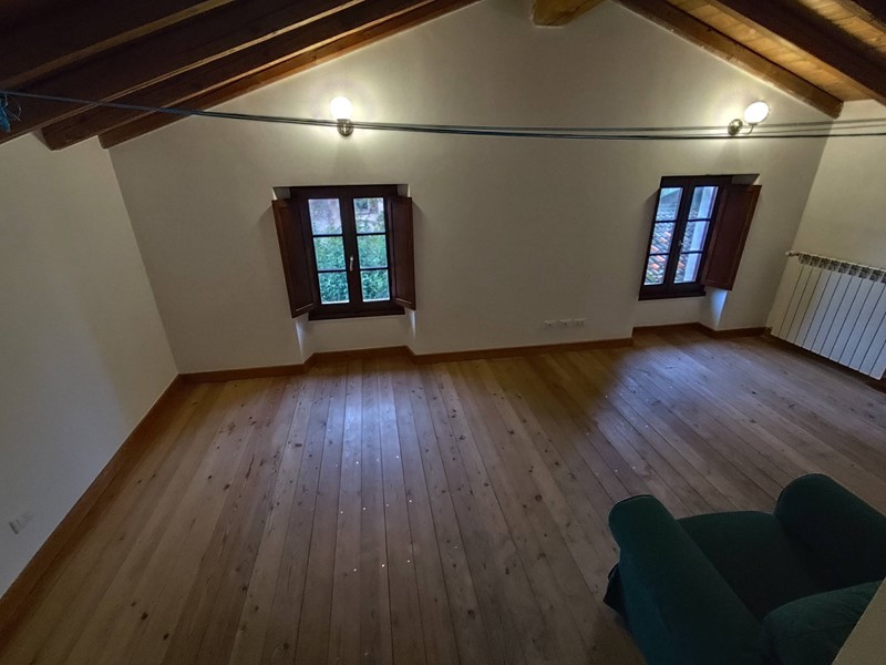 L'appartamento ha accesso da una scala in legno che dalla corte accompagna al piano primo .