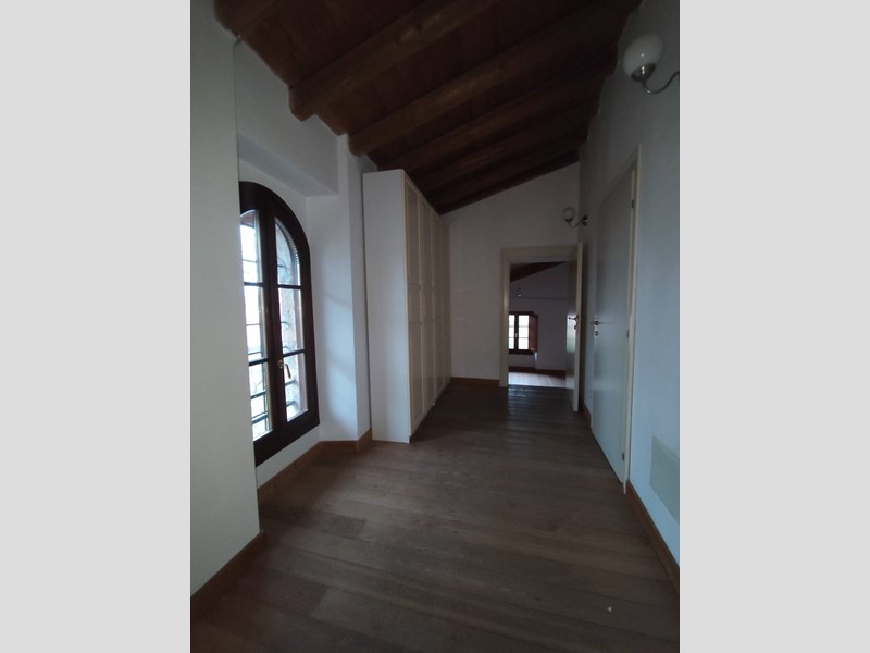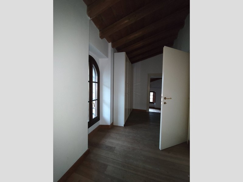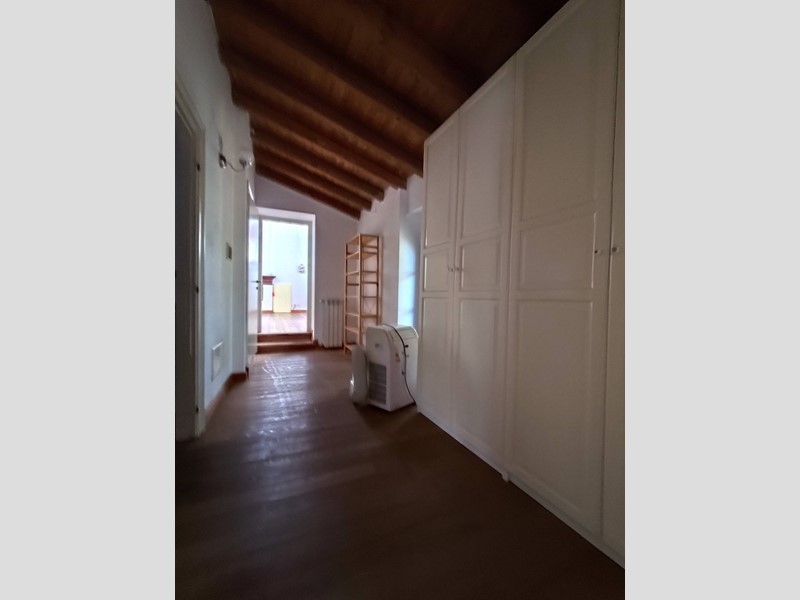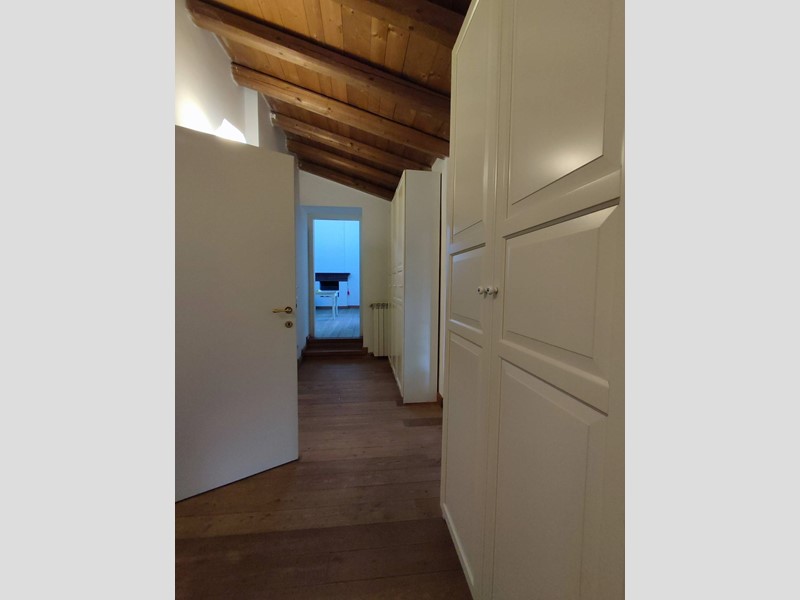 Un corridoio di disbrigo con armadiature accompagna alle due camere una padronale con bagno dotato di doccia ed una di facili personalizzazioni utilizzabile come seconda camera o studio. Ulteriore bagno di servizio con doccia.