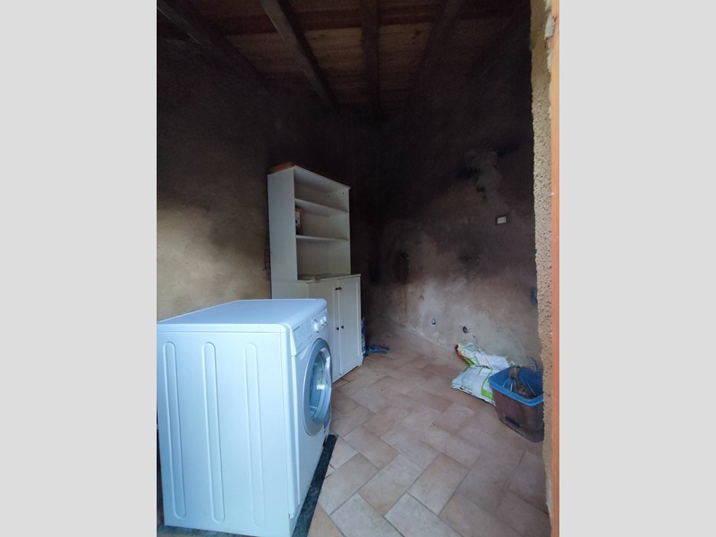 Dal soggiorno una doppia porta finestra in legno consente l'accesso ad una scala che accompagna al giardino riservato dell'appartamento ed a un locale ideale come cantina/ lavanderia, con lavatrice funzionante inserita.