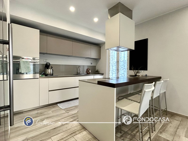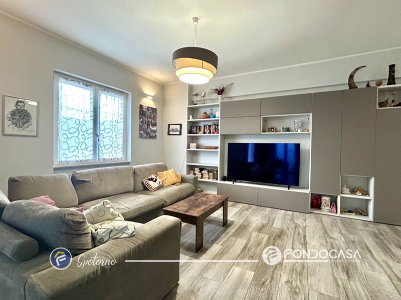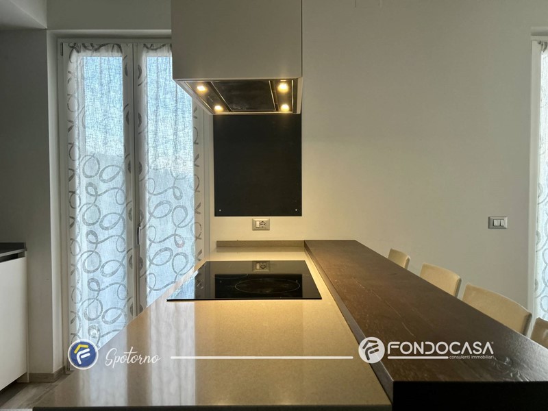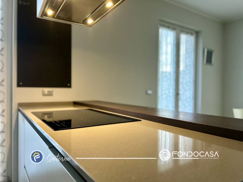 L'ingresso si apre su spazioso soggiorno con camino a legna, ideale per creare un'atmosfera calda e accogliente, e la cucina con pratica isola con piano ad induzone. Tramite la zona giorno è possibile accedere a due balconi che circondano i lati della palazzina. Successivamente troviamo due disimpegni che portano alla zona notte e ai servizi, dotati uno di vasca e uno di box doccia.