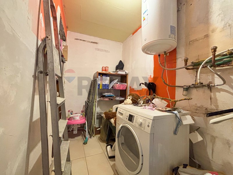 Ingresso con 2 vani ripostigli (perfetti per stipare oggetti di ogni tipo), ampio soggiorno con balcone e zona cottura, e una camera da letto.