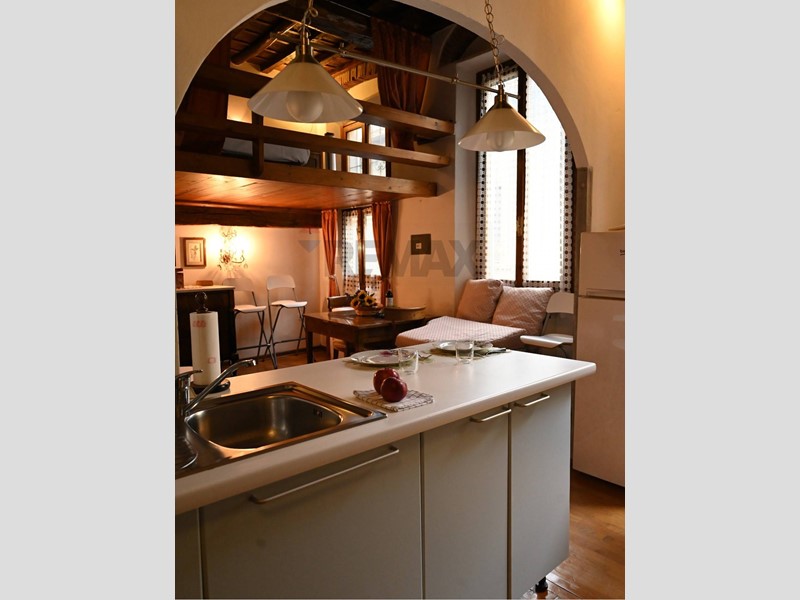 L'immobile che vi proponiamo è situato in perfetta zona centrale di Firenze, a pochi passi da Piazza Del Duomo e Piazza Santissima Annunziata, all'interno di una palazzina di vecchia costruzione. L'appartamento di due vani si colloca al secondo piano e si sviluppa su una superficie di circa 35mq. Non appena vi si entra troviamo un'ambiente rustico ma al tempo stesso caldo e avvolgente, tipico dello stile toscano, con un soffitto interamente coperto di listelli di legno nella parte iniziale dell'ingresso/sala, mentre la zona dell'angolo cottura si amplia grazie al bellissimo soffitto con grandi travi a legno che supera i 3 metri di altezza. Tramite delle scale in legno saliamo nella zona notte situata sul grande soppalco e che da accesso anche ad una piccola soffitta. Il bagno è comodo e spazioso e si trova al piano inferiore dell'appartamento.