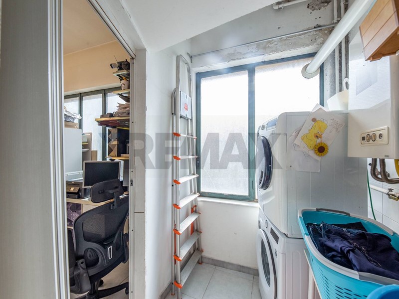 La superficie totale dellimmobile è di 146 metri quadrati, di cui 135 calpestabili, ed è composto da tre ampi locali, due camere da letto e due servizi: Lingresso conduce ad un luminoso soggiorno, che si affaccia su una grande piazza. La cucina, adiacente al soggiorno, è ampia, abitabile e confortevole con accanto un vano verandato che si affaccia su un comodo terrazzo.
