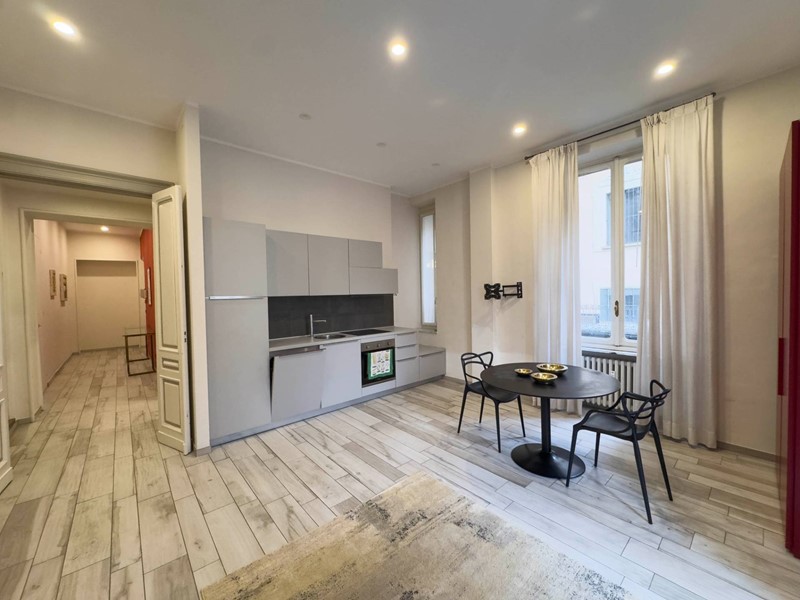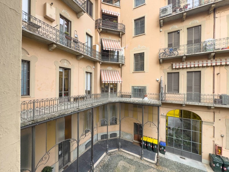 Nel cuore della prestigiosa zona Crocetta di fronte ai giardini dell'isola pedonale, in splendido stabile d'epoca risalente al 1902 con servizio di portineria ed ascensore, al piano primo ampio monolocale di circa 60 mq recentemente ristrutturato e completo di arredi, composto da ingresso con armadiate a muro, ampia zona giorno angolare, con balcone che affaccia su gradevole cortile interno e altre due finestre, cucina a vista completa di tutti gli elettrodomestici con piano ad induzione, zona salotto con divano letto, bagno finestrato con grande doccia e termoarredo, sanitari sospesi e lavasciuga.