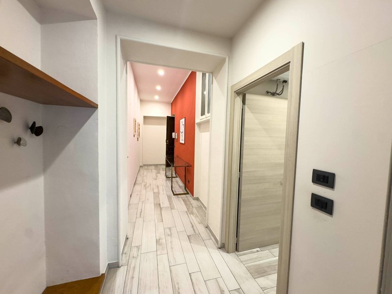 Pavimento in gres porcellanato uniforme in tutti gli ambienti, porte interne d'epoca restaurate e soffitti h. 3.20.