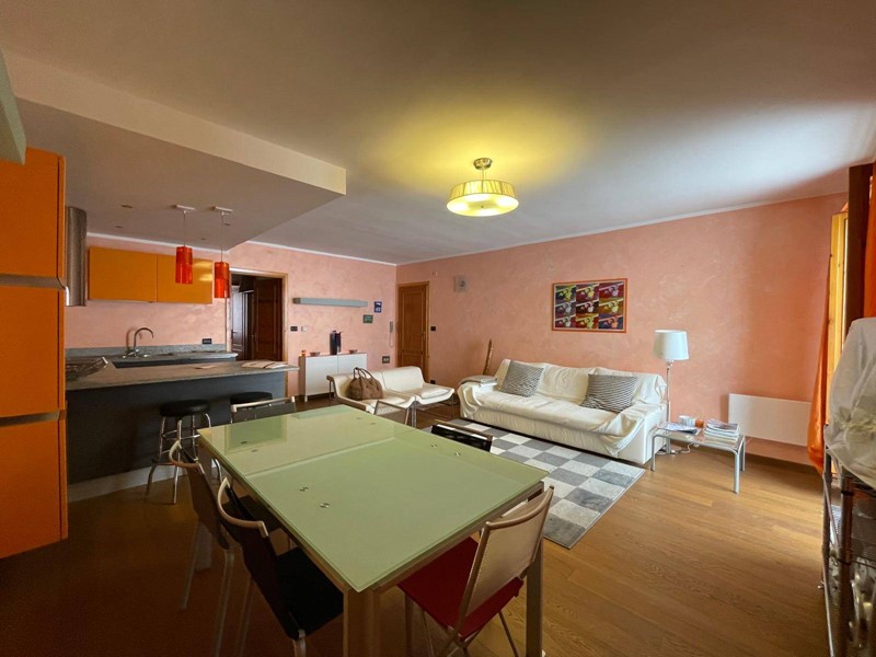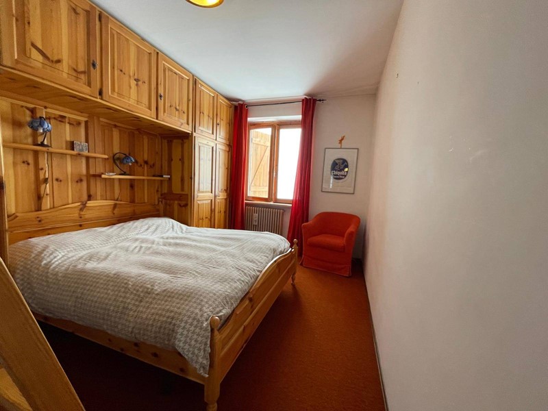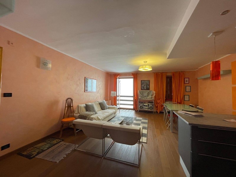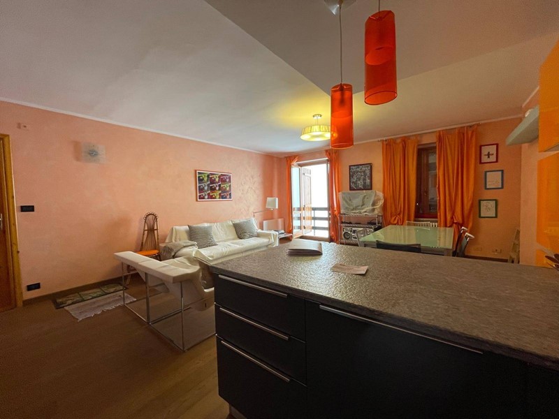 ingresso su ampio e luminoso soggiorno con cucina a vista, disimpegno, camera da letto, servizio, balcone con affaccio diretto sulle piste da sci, perfetto per vivere appieno latmosfera alpina.