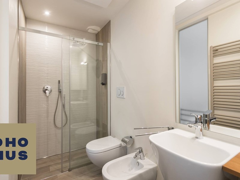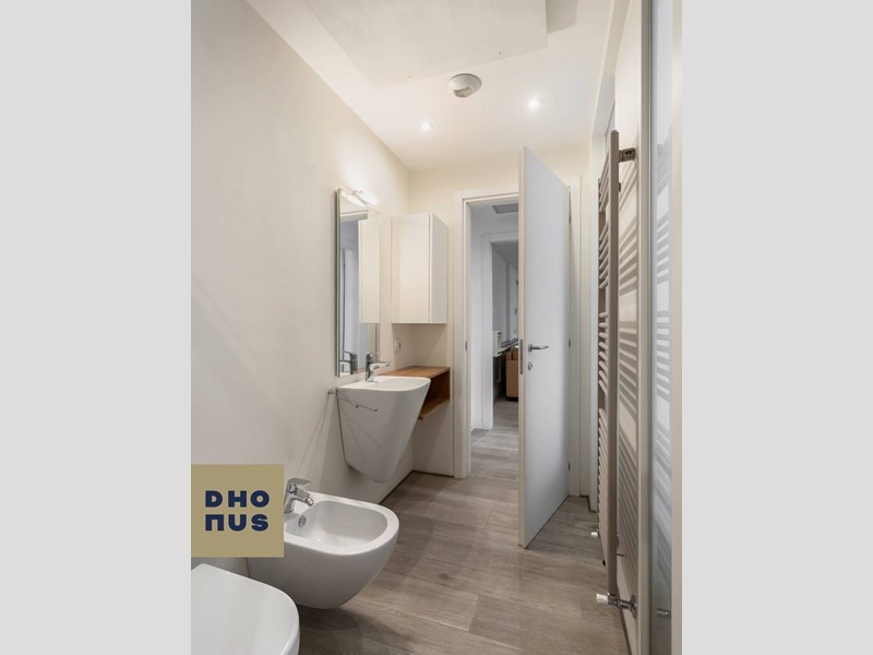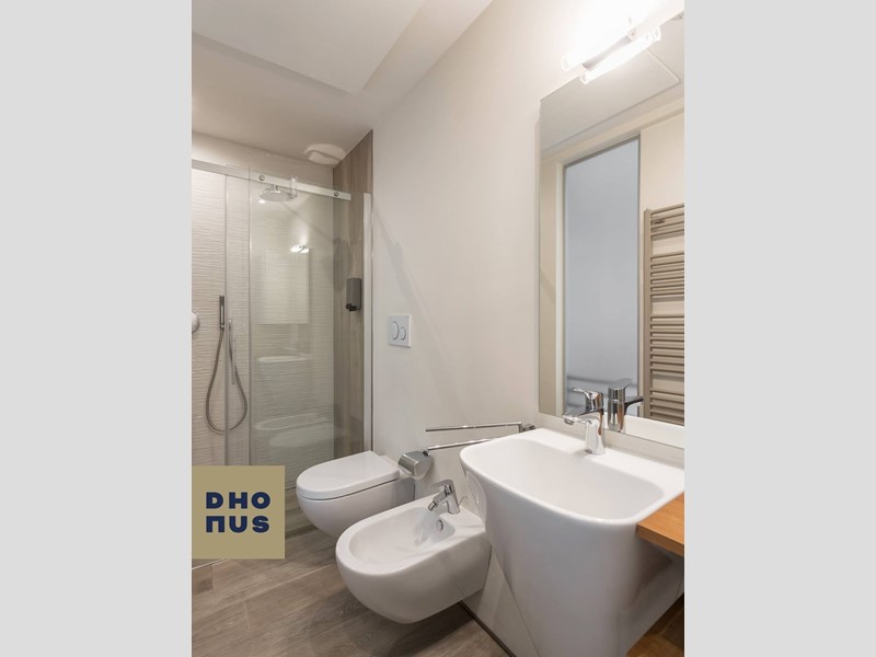 Il bagno, moderno ed elegante, completa unabitazione che comunica cura e qualità in ogni dettaglio.