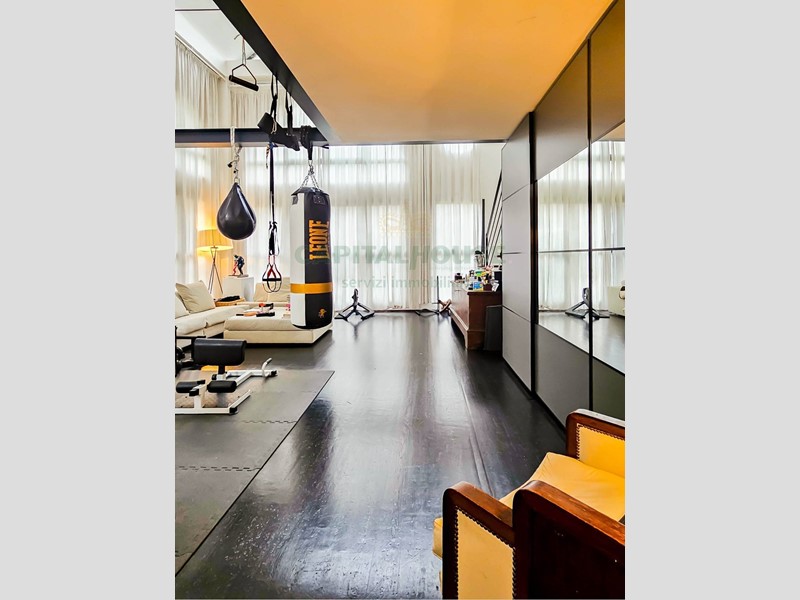 Lingresso si apre su una grande zona giorno open space, dove la cucina allamericana si integra perfettamente con lampia area pranzo e un salone living di grande respiro, arricchito da una palestra a vista, ideale per chi desidera uno stile contemporaneo e funzionale.