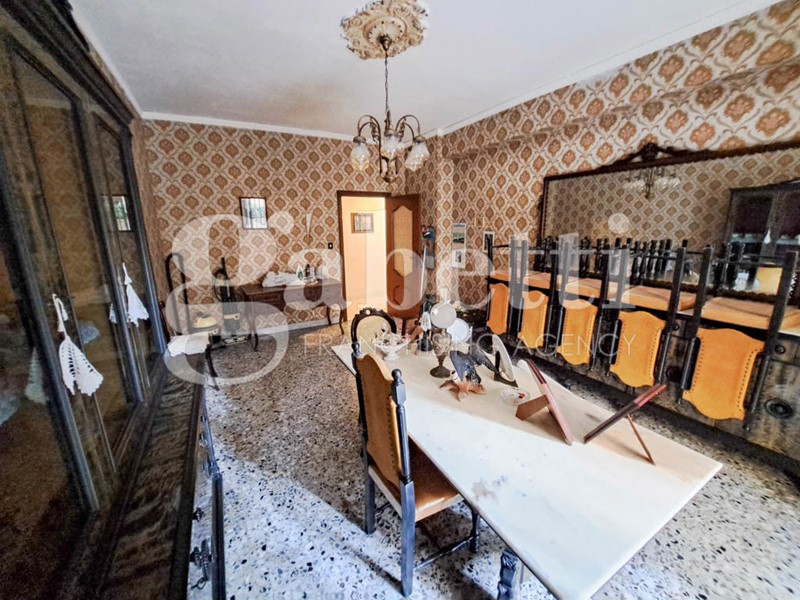 ingresso in ampio disimpegno, salone doppio, due camere da letto, cucina abitabile, bagno e ripostiglio, completa la proprietà un ampio balcone accessibile da tre camere.