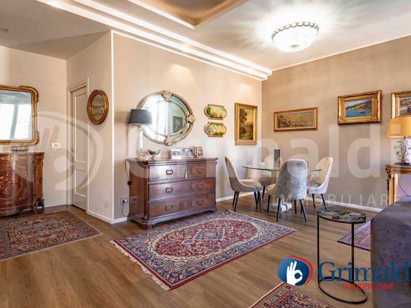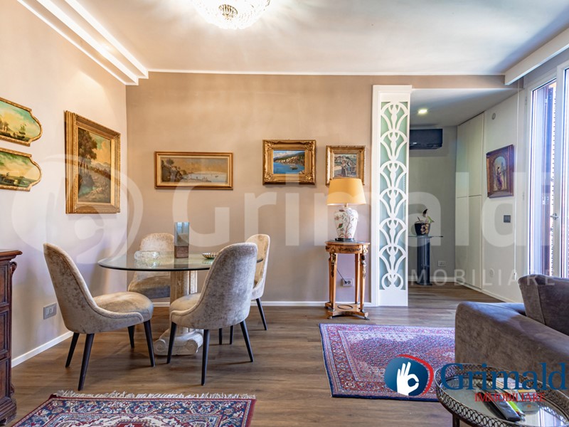 ?L'immobile, di 90 mq, è il risultato di una ristrutturazione totale e finissima. Entrando, si viene accolti da un salone di rappresentanza particolarmente ampio e arioso, caratterizzato da una naturale luminosità che ne valorizza gli spazi. La cucina è stata sapientemente celata dietro un tramezzo, garantendo una perfetta pulizia visiva della zona living senza rinunciare alla funzionalità, con accesso diretto ad un primo balcone.