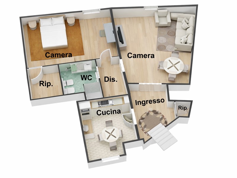 Le immagini presenti nell'annuncio includono alcune proposte di arredamento digitale, realizzate con tecniche di home staging virtuale, pensate esclusivamente per valorizzare gli spazi e l'arredo, aiutando a immaginare al meglio come vivere l'immobile