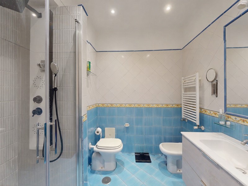 Il bagno è completo, dotato di box doccia, e la presenza di ripostigli e spazi di servizio rende l'appartamento comodo e facile da gestire.