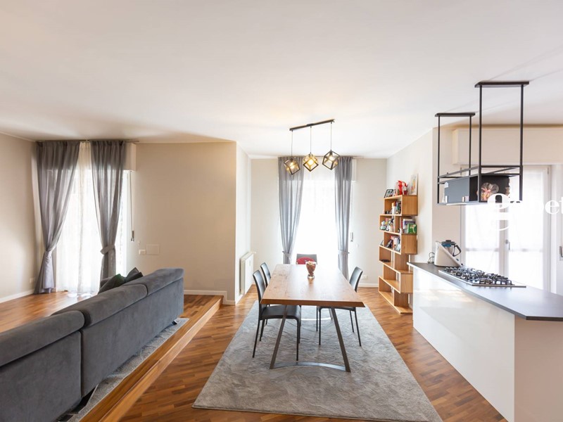 Paderno D'Adda - In minipalazzina prestigioso appartamento completamente ristrutturato con finiture di livello e terrazzo parzialmente coperto di complessivi 50 mq ideale per godersi momenti di relax all'aria aperta. Un ampio e luminoso appartamento per complessivi 156 mq, suddiviso in un ampio salone con cucina a vista, tre camere di cui una suite, doppi servizi e una zona studio separata dove è possibile lavorare, giocare o studiare con la massima tranquillità e indipendenza. Gli infissi sono in PVC dotati di doppio vetro con all'interno gas argon, garantendo un'ottima efficienza termica e acustica. Il sistema di allarme protegge completamente l'unità immobiliare.