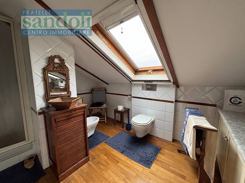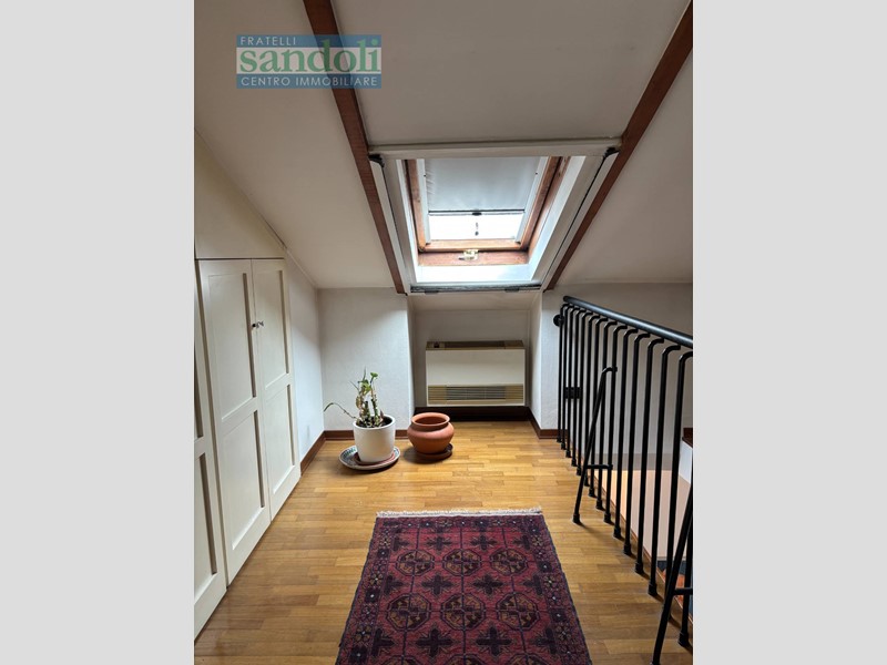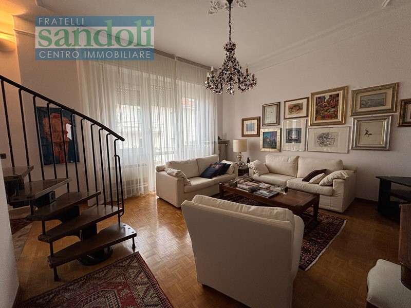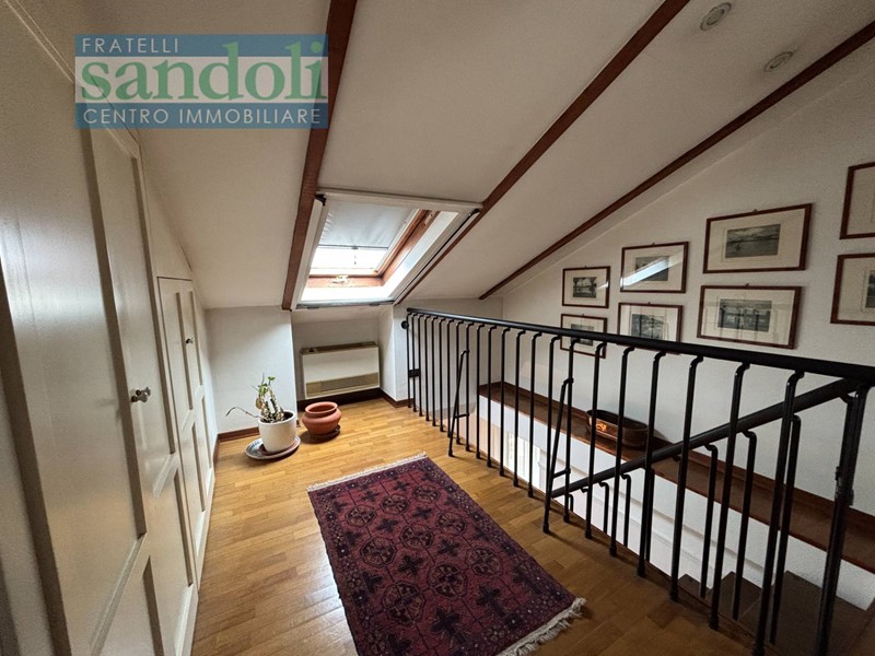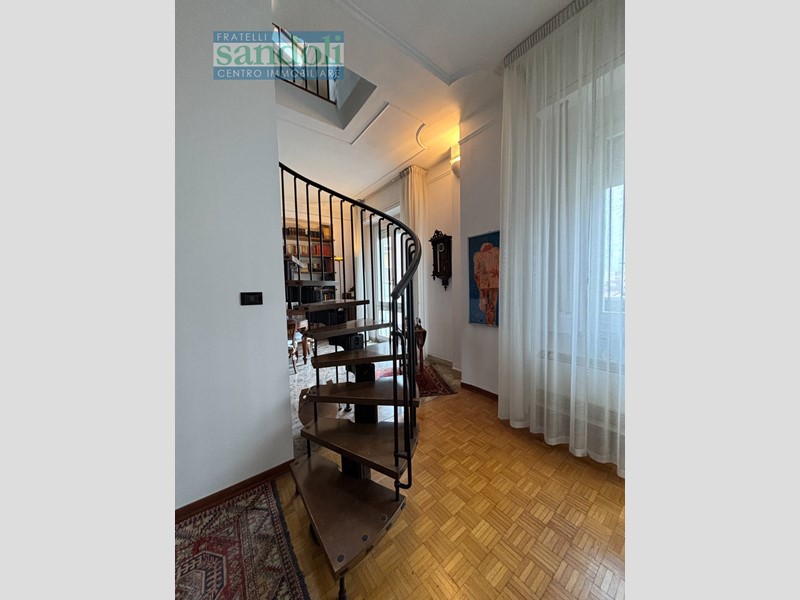 L'immobile, al terzo piano di una palazzina dotata di ascensore, si sviluppa su una superficie totale di 170 metri quadrati e si dispone sue due livelli. Al piano d' ingresso si entra nella zona giorno composta da salone doppio, camera da letto o studio, cucina abitabile e bagno. La zona notte è collegata internamente tramite una rifinita scala in legno e si dispone con due camere da letto e secondo bagno.