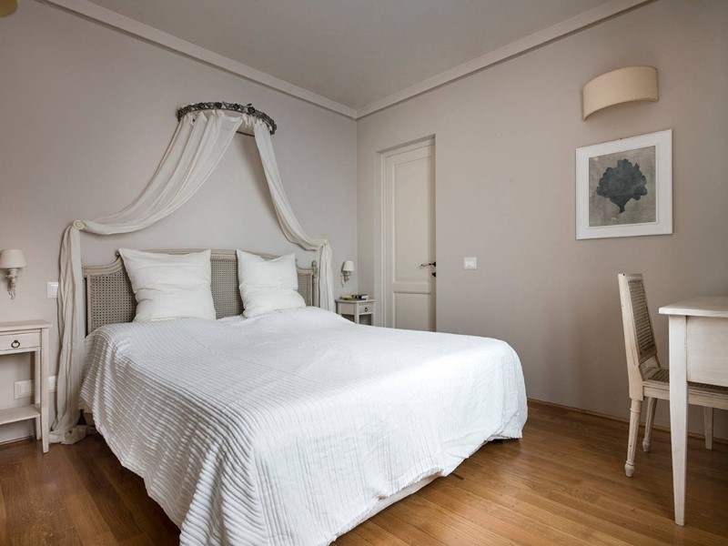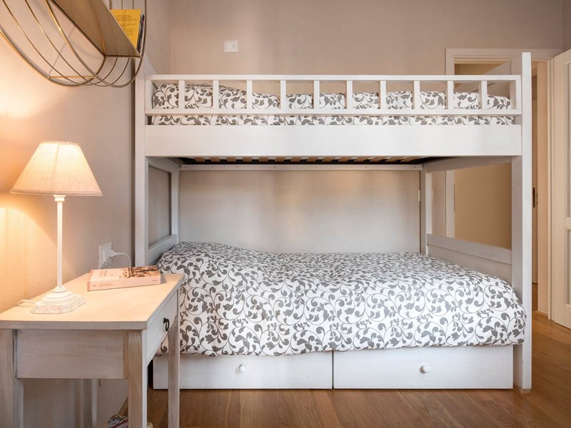 La proprietà dispone di una camera matrimoniale e una camera singola, entrambe impreziosite da parquet in tutta la casa, che conferisce continuità, calore e uno stile raffinato agli spazi.