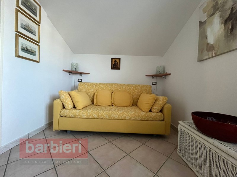 L'appartamento è composto da soggiorno affacciato sul ampio balcone, cucina separata, una camera matrimoniale con balcone e bagno finestrato con box doccia; proseguendo al primo piano mansardato troviamo ulteriore camera con bagno.