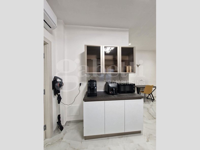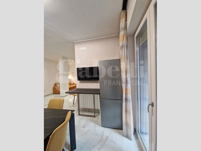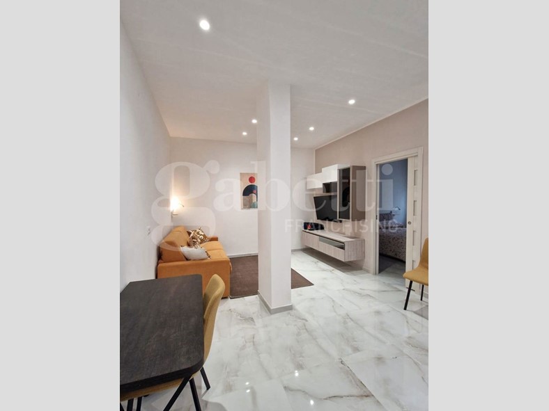 CENTRO: Corso Umberto I, al 5° piano di un elegante condominio servito da ascensore, si propone moderno e raffinato bivani di 70 mq di nuova realizzazione. L'abitazione si compone di un luminoso soggiorno con divano letto, cucina a vista attrezzata con elettrodomestici di alta qualità, camera da letto matrimoniale, bagno con doccia e balcone. Completamente arredata e dotata di ogni comfort. L'appartamento è caratterizzato da finiture di pregio, con tapparelle elettriche, porta blindata, impianto di riscaldamento autonomo e climatizzazione. Servizio di portierato e spese condominiali incluse nel prezzo. Possibilità di abbinare un posto auto in garage privato a soli 150 metri dall'abitazione. Disponibile da marzo, contattaci per maggiori informazioni e per prenotare una visita.