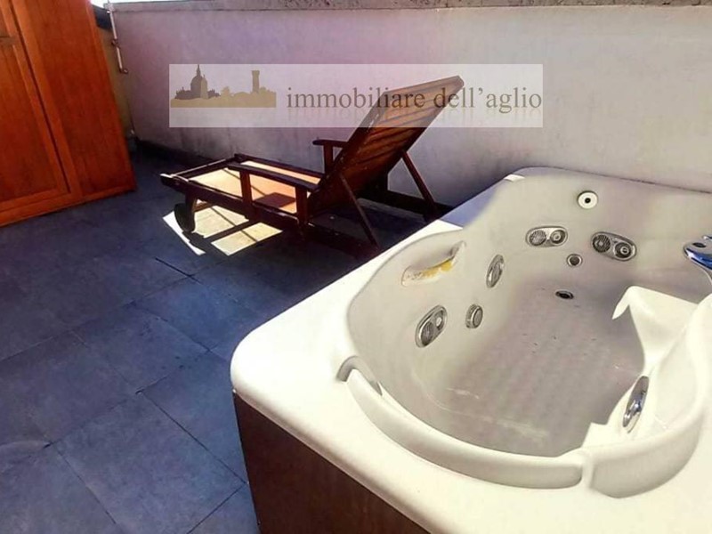 Nella zona notte troviamo tre spaziose camere da letto e due bagni, tra cui una suite padronale con bagno privato. Un'altra terrazza accoglie una raffinata zona relax, completa di sauna e vasca idromassaggio, per garantire il massimo della privacy. Completano la proprietà un garage al piano interrato e posti auto nell'area condominiale.