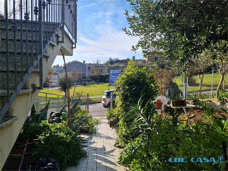 Coriano paese a pochi minuti da Riccione e Rimini, in contesto di sole 4 unità abitative, proponiamo un appartamento ben tenuto con ingresso indipendente al piano terra con ampio giardino privato con olivi ventennali. Piano primo ingresso all'appartamento suddiviso in con cucina a vista, soggiorno/pranzo con due finestre che concedono alla zona giorno molta luminosità, disimpegno, bagno finestrato con doccia, camera matrimoniale e seconda camera di buone dimensioni. Due balconi, uno sul soggiorno e l'altro nella zona notte con annesso ripostiglio per la caldaia e la lavatrice. A completare l'immobile troviamo un garage grande pavimentato con annessa una cantina e un bagno/lavanderia. L'accesso è comodo, in quanto oltre allo scivolo auto si ha a disposizione la scala privata dal proprio giardino. Libero e disponibile da subito. L'immobile è a pochissimi chilometri dal mare di Riccione inserito in un contesto paesano nel quale possiamo trovare la maggior parte dei servizi: servizi sanitari, supermercati, servizi finanziari, bar Pasticceria, fioraio, meccanico, farmacia storica ed altri servizi commerciali.\nDa evidenziare la presenza di un polo scolastico che segue i bambini dall'asilo, alle elementari fino alle scuole medie.\nA pochi chilometri anche da San Marino e da Morciano Di Romagna centro di grandissima azione commerciale, con la presenza di molteplici istituti di credito, Inps, Polo scuole superiori di vari Istituti tecnici, linguistici, ecc.\n\n( GLI ARREDI SONO UTILIZZATI ESCLUSIVAMENTE PER PRENDERE VISIONE DEGLI SPAZI. )Per le visite contattare l'agenzia Che-Casa di Coriano allo 0541-658587 - Maggiori Dettagli: Climatizzato, Cassaforte, Balcone o terrazzo vivibile, Porta blindata, Ingresso indipendente, Giardino privato