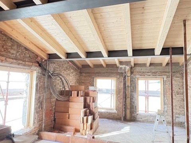 Limmobile è oggetto di un intervento totale: riscaldamento a pavimento, solai nuovi, tetto nuovo e impianti di ultima generazione.