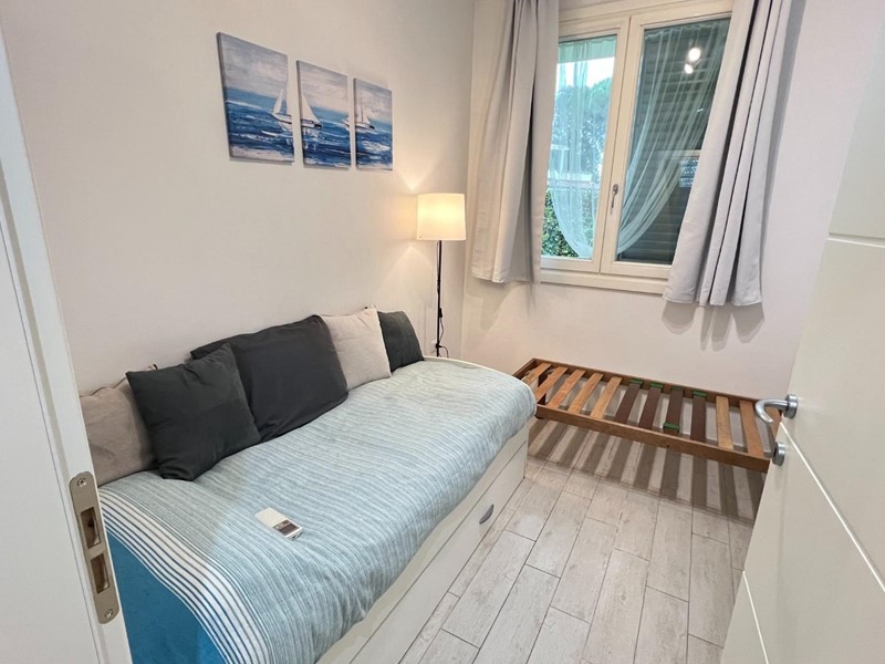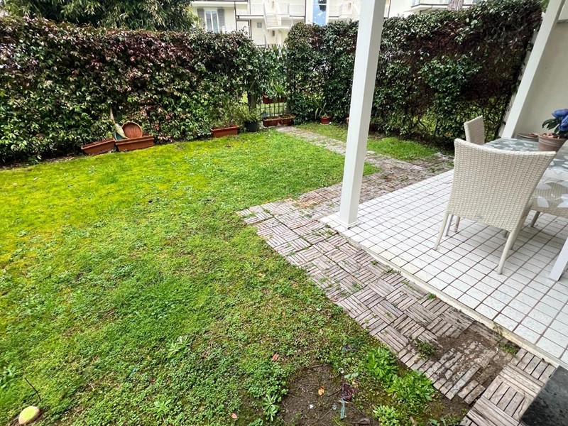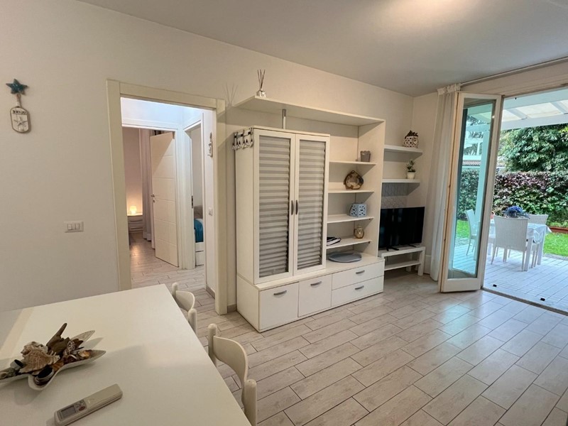 Poveromo, a 400 metri dalle Spiagge, Vendesi Appartamento di Recente Costruzione. Ingresso su Soggiorno Open Space con Angolo Cottura e Accesso al Giardino Privato, Camera Matrimoniale, Cameretta, Bagno con Doccia. Giardino Privato con Veranda Pranzabile e Piccolo Angolo Lavanderia; Ampia Cantina nel Piano Seminterrato con Accesso Tramite Scale e Ascensore (per biciclette); Parcheggio Scoperto in Area Condominiale Recintata e con Cancello Elettrico. Condizionatori Caldo/Freddo/Deumidificatore. Viene Ceduto Arredato come da Foto.