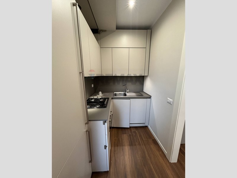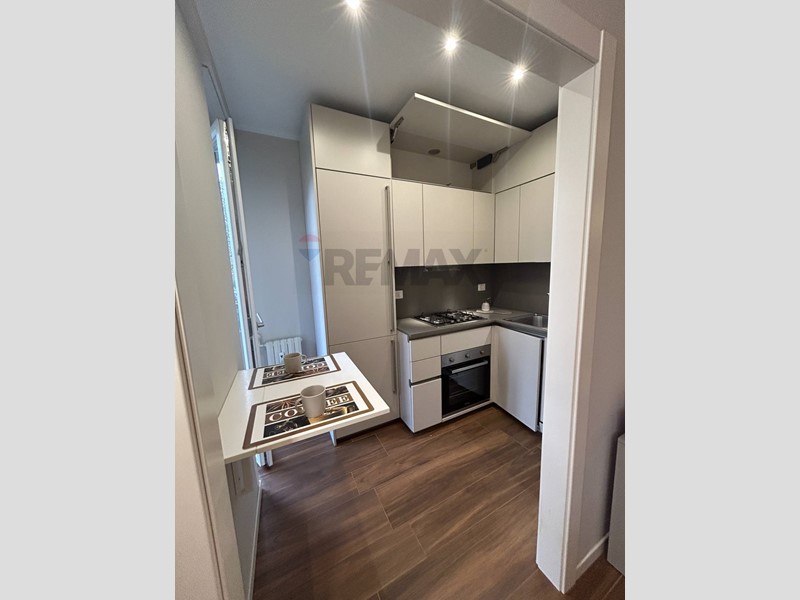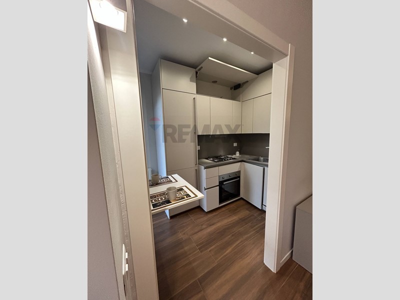 Cucina: Ambiente separato ma comunicante tramite unampia apertura moderna, che garantisce funzionalità e respiro architettonico.