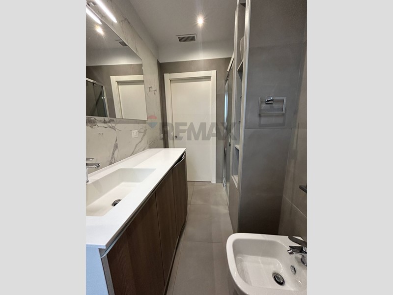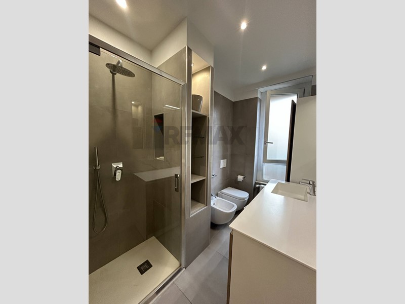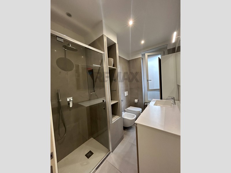 Bagno: Un ambiente moderno e raffinato, finestrato e dotato di unampia doccia con finiture di alta gamma.