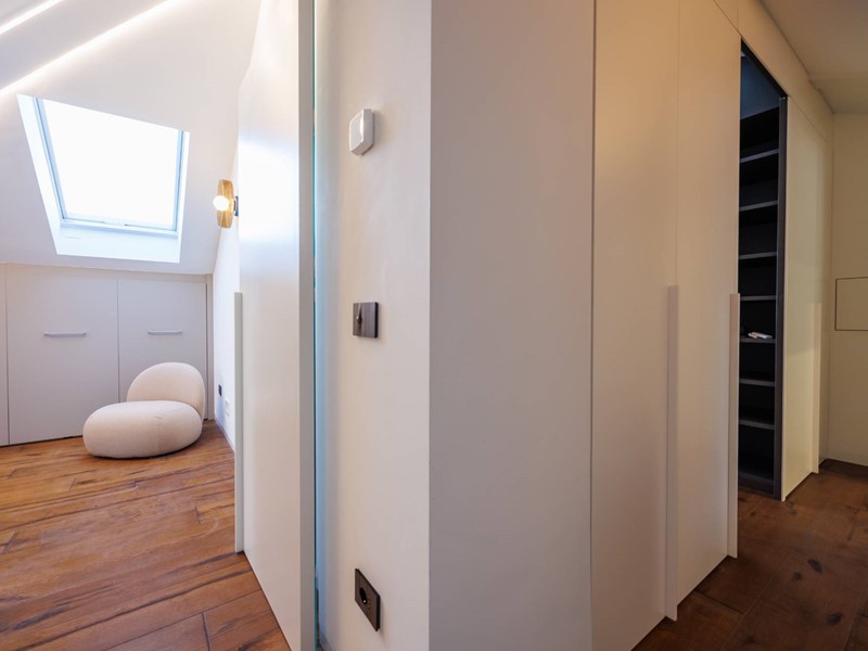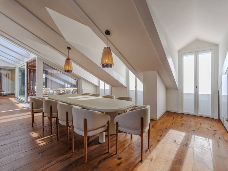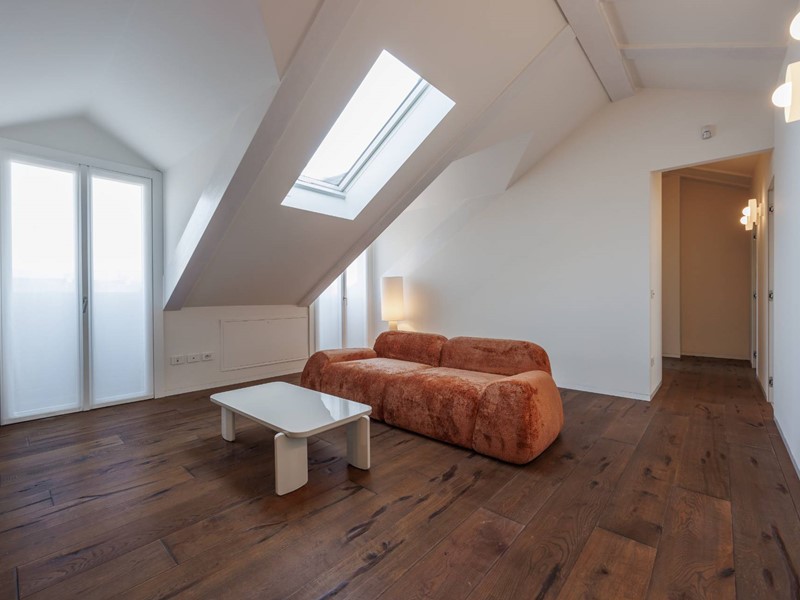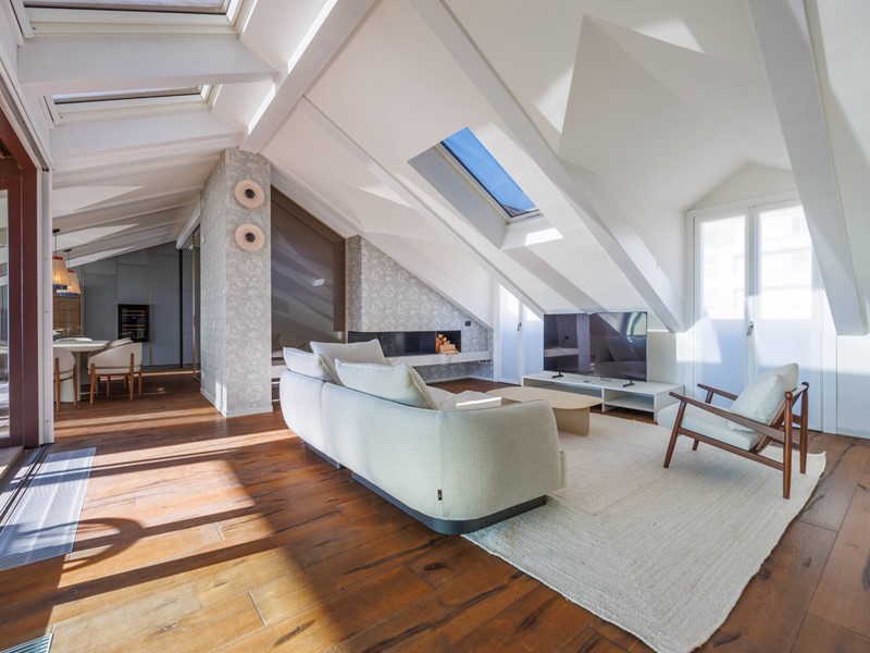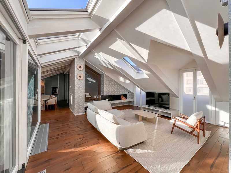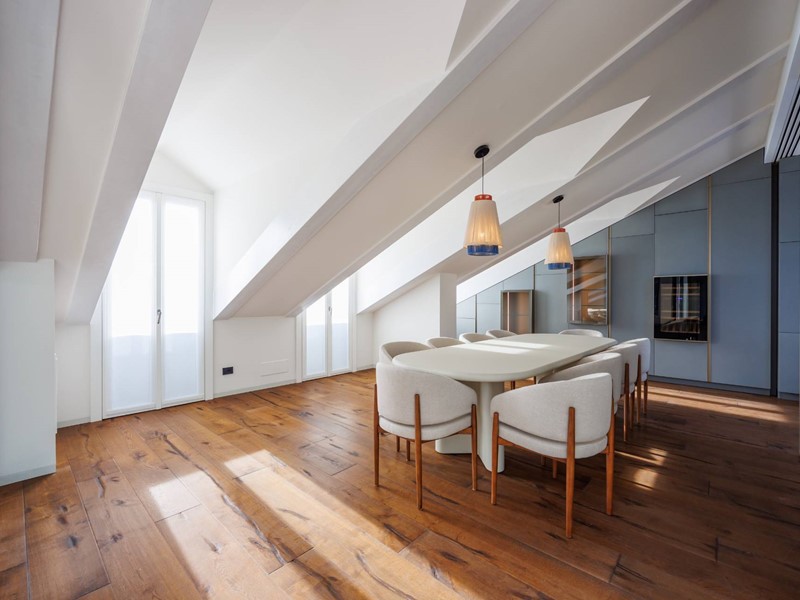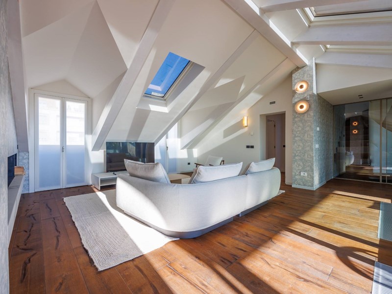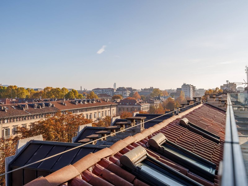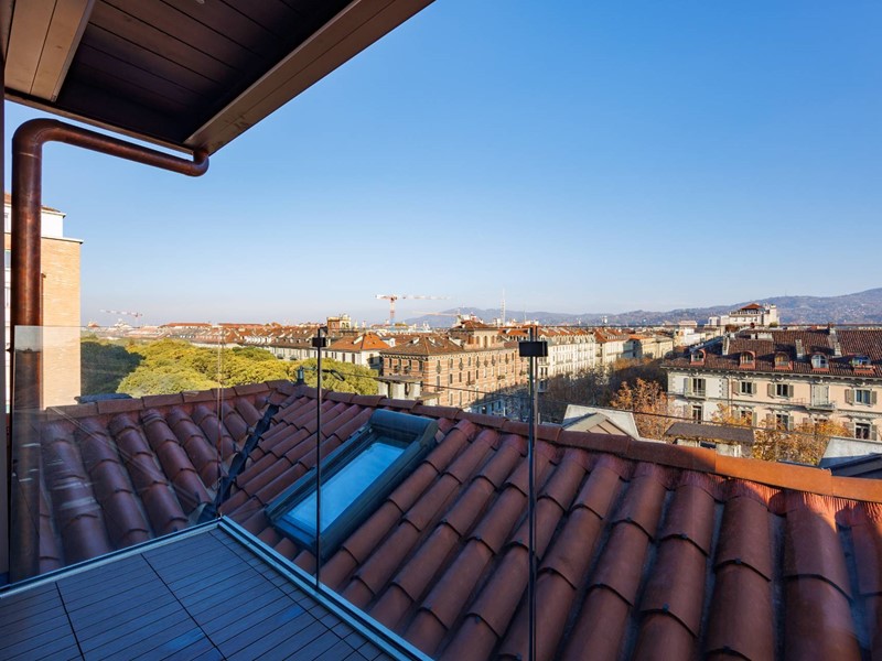 In elegante palazzo di inizi 900, esclusivo progetto residenziale ottenuto recuperando ed ampliando il livello delle soffitte trasformandole in una moderna residenza di rappresentanza con vista sui tetti di Torino.