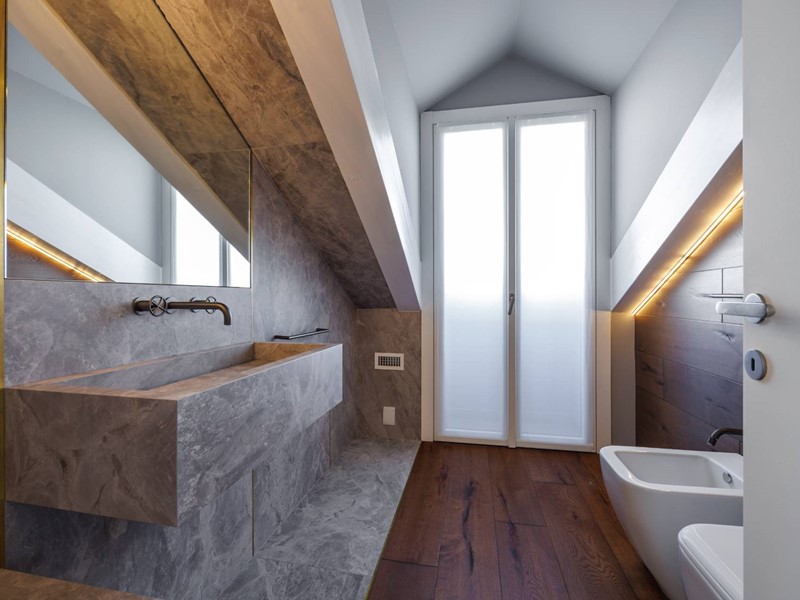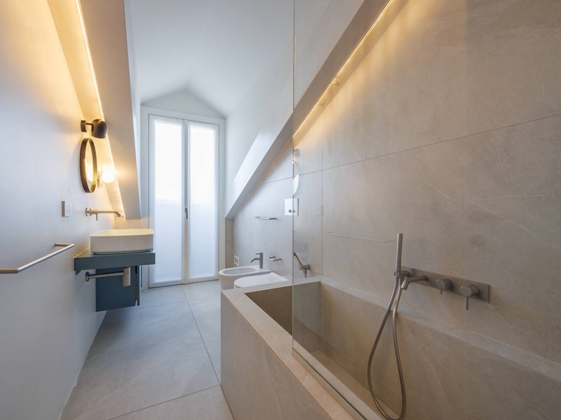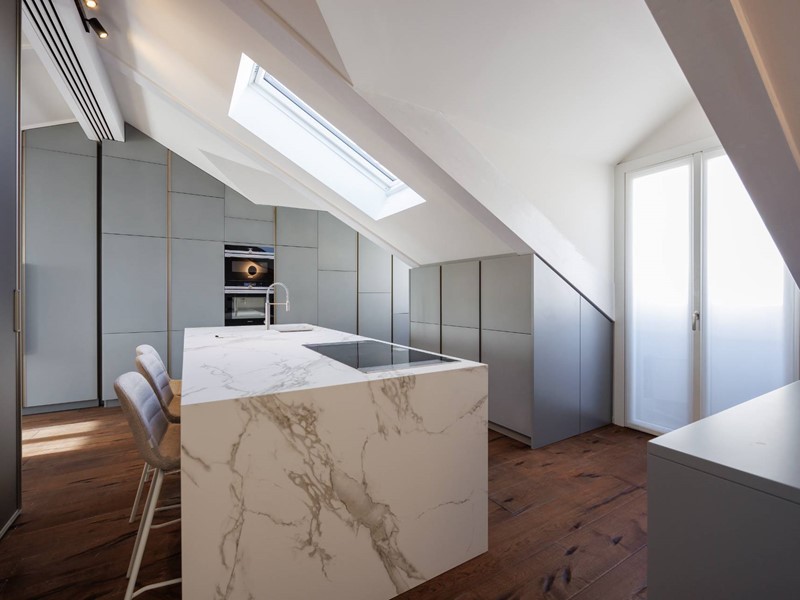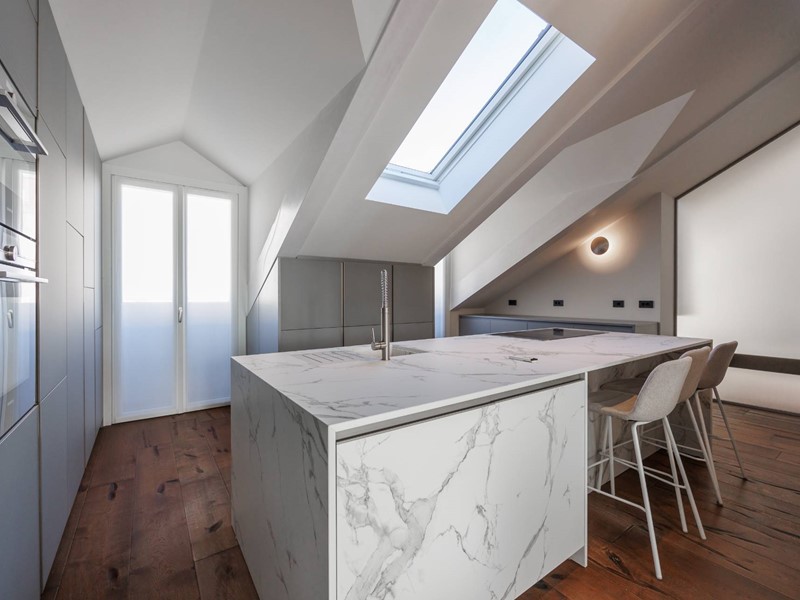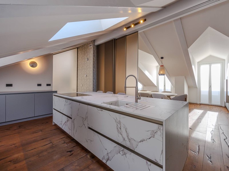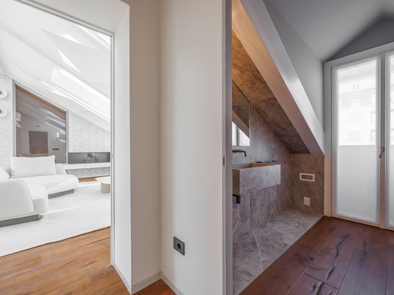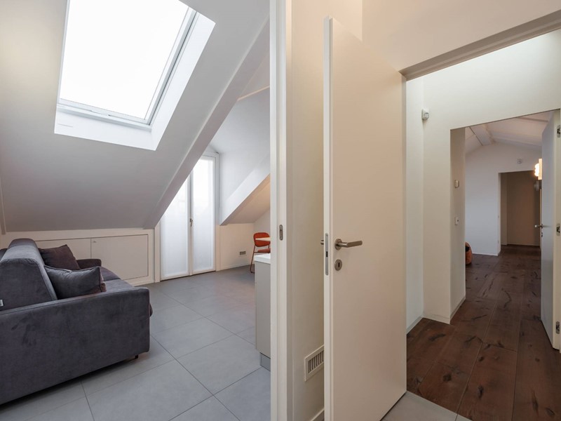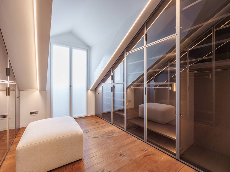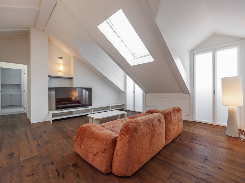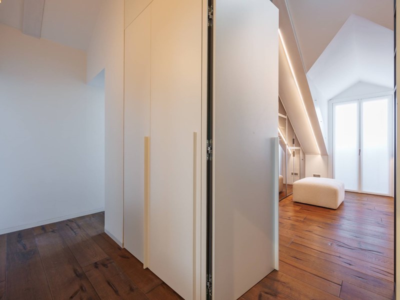 In elegante palazzo di inizi 900, esclusivo progetto residenziale ottenuto recuperando ed ampliando il livello delle soffitte trasformandole in una moderna residenza di rappresentanza con vista sui tetti di Torino.