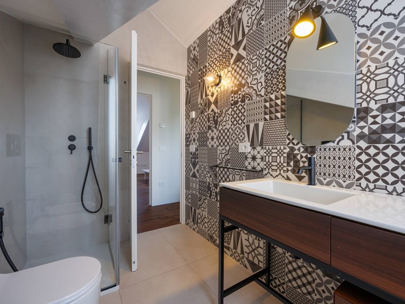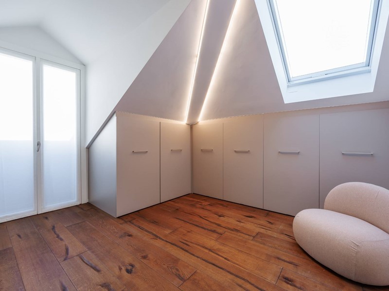 Impianto di riscaldamento e raffrescamento a pavimento dispositivo antifurto volumetrico e perimetrale, filodiffusione, Gestione da remoto per luci , impianto di riscaldamento e raffrescamento sistema di antifurto tramite app Bticino; velux elettrificati, armadi e mobilio su misura.