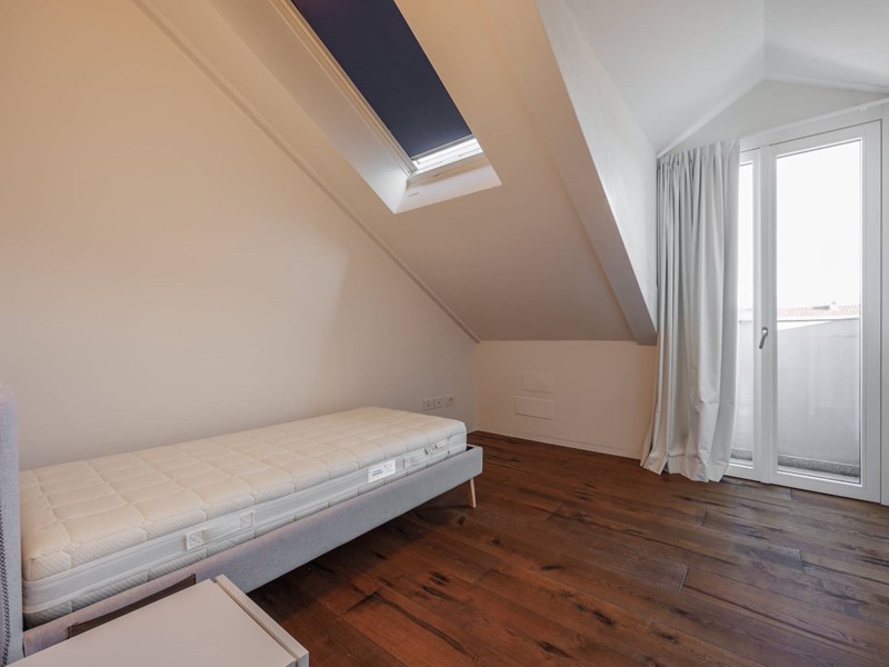 Una scala dal design contemporaneo collega il sesto piano con una torretta. Quest'ultima ospita una meravigliosa camera padronale, con due bagni in suite ed una vista impagabile sulla collina torinese e sulla città.