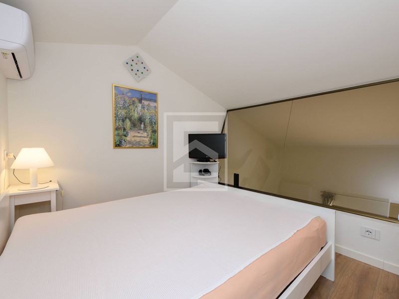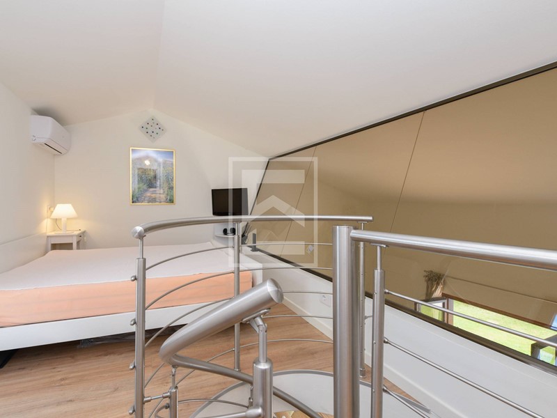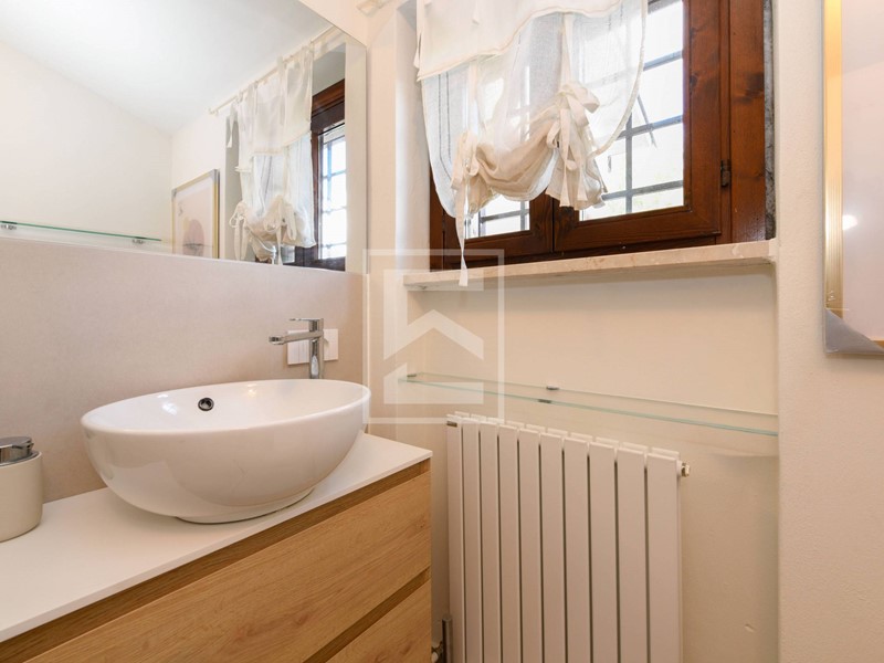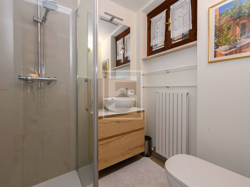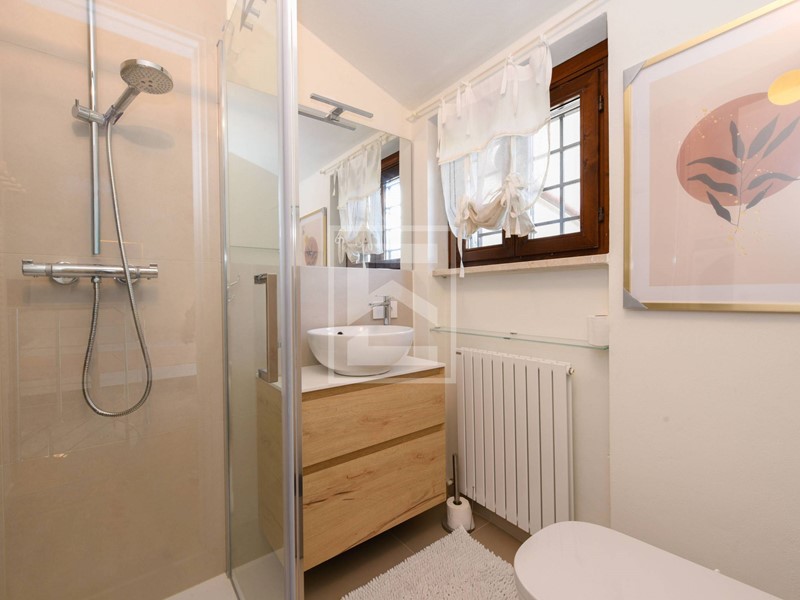 Soppalco adibito a seconda camera da letto con ulteriore bagno finestrato, anchesso dotato di wc con bidet integrato, doccia e lavavo, oltre a balcone privato con affaccio sulle colline della Valtenesi.