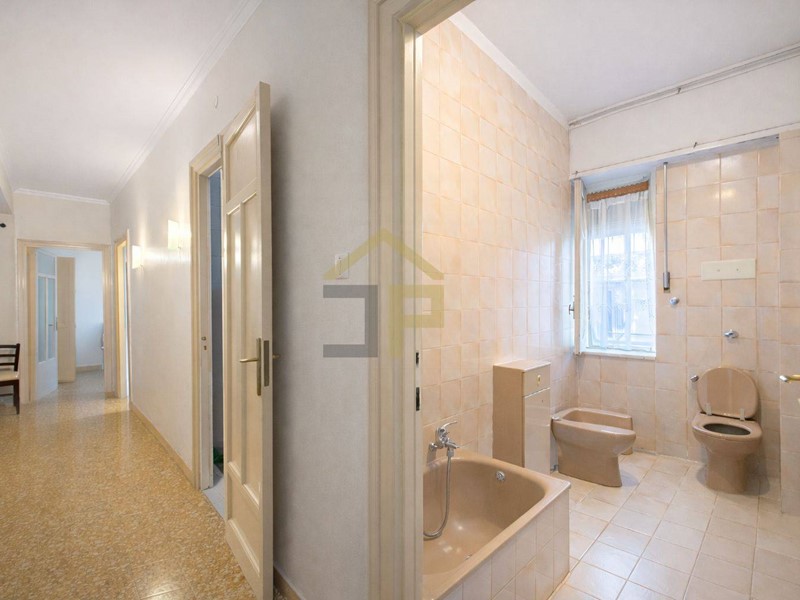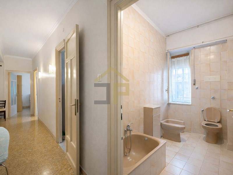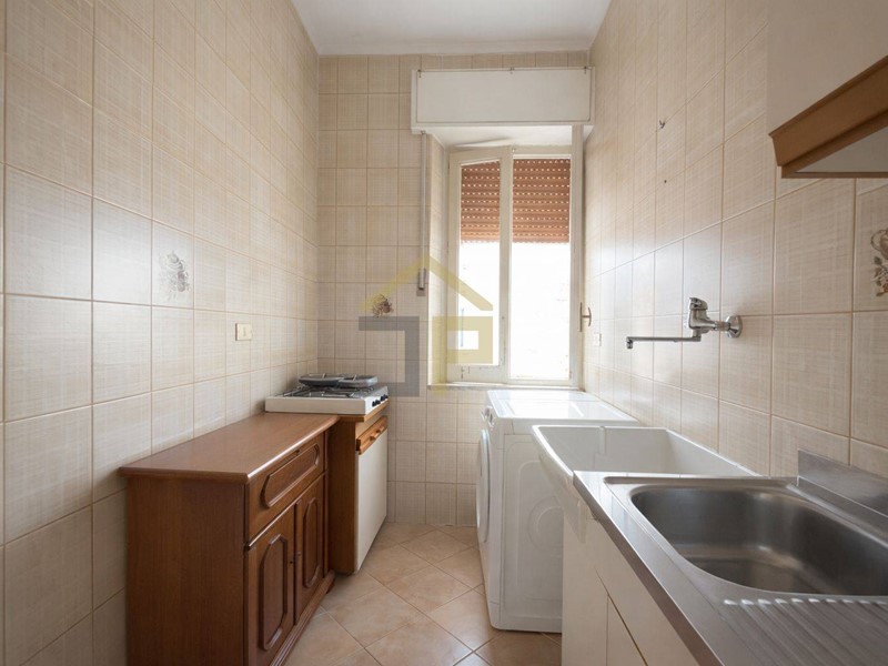 Lappartamento si trova al quinto piano di uno stabile di sei elevazioni, dotato di ascensore, e presenta una superficie catastale di circa 73 mq commerciali. La distribuzione interna comprende una saletta dingresso che introduce agli ambienti principali, un soggiorno, una cucina, due camere da letto e un servizio igienico finestrato.