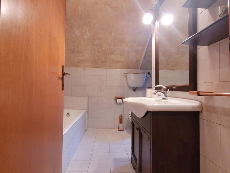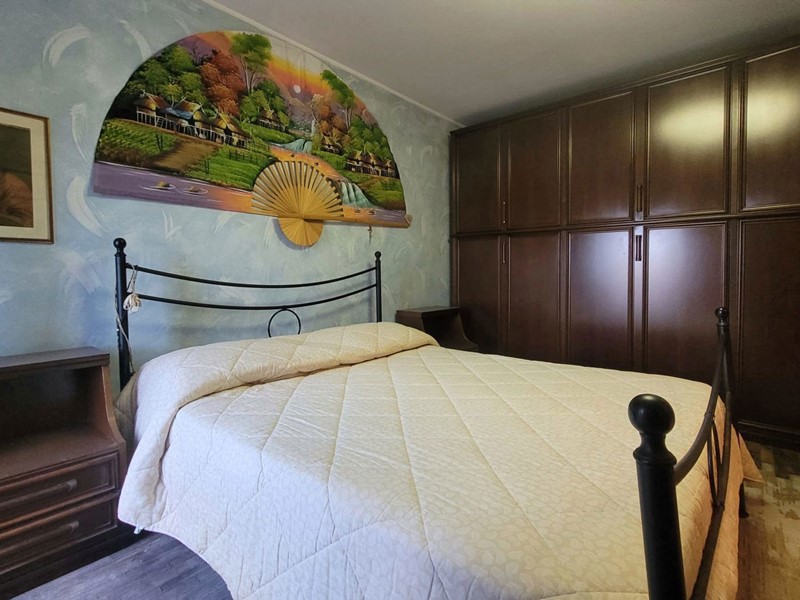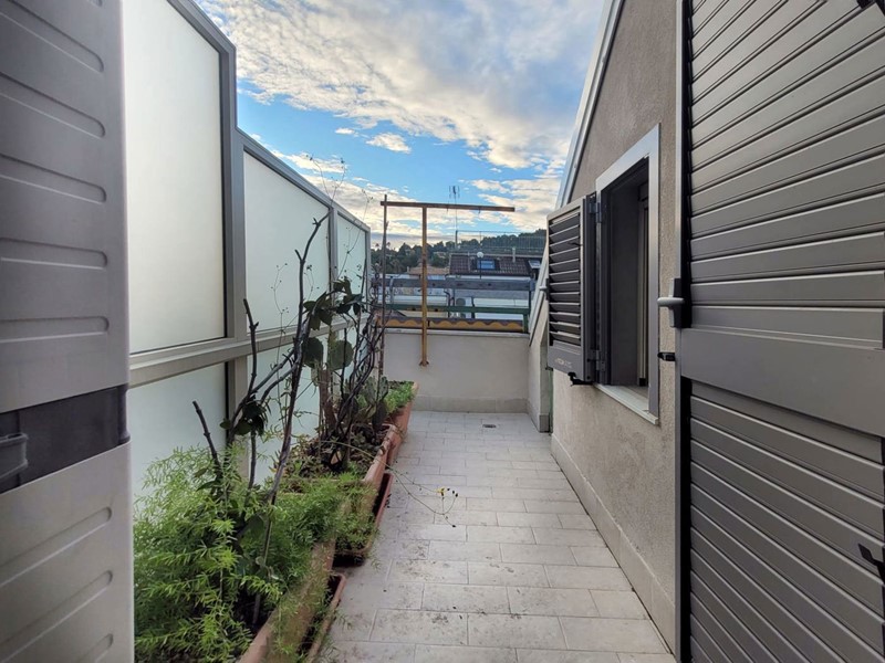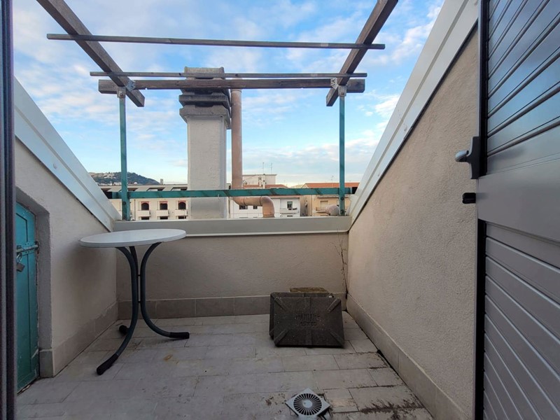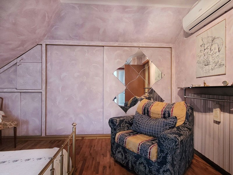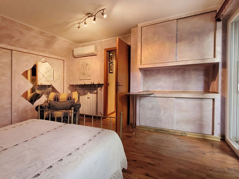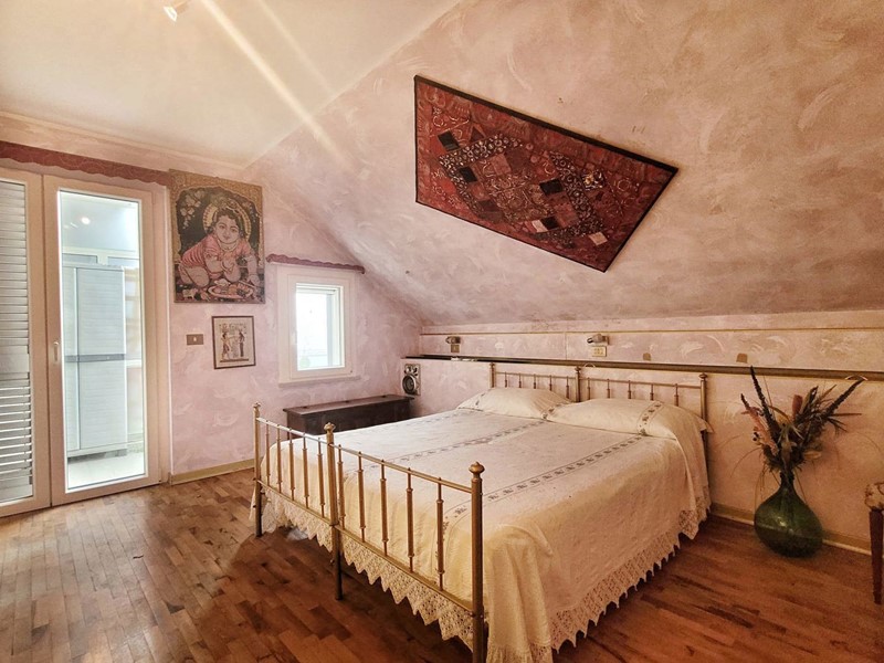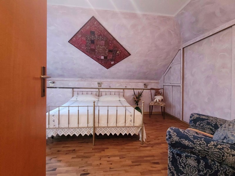 L'appartamento di circa 99mq compresi i balconi, si sviluppa su due livelli, al piano inferiore l'appartamento è organizzato in un ingresso su soggiorno, con balcone, una cucina abitabile con camino, e ulteriore balcone abitabile, una camera matrimoniale, un bagno. Attraverso una scala interna si accede al piano superiore con destinazione soffitta, in cui sono presenti due camere matrimoniali e un bagno, oltre due balconi, il piano superiore presenta delle spiovenze e gli spazi con altezza minima sono stati in parte ottimizzati ricavando degli armadi a muro .