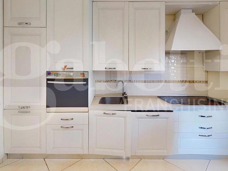 La soluzione si compone di un salone con angolo cottura, una camera da letto, una cameretta, disimpegno e bagno.