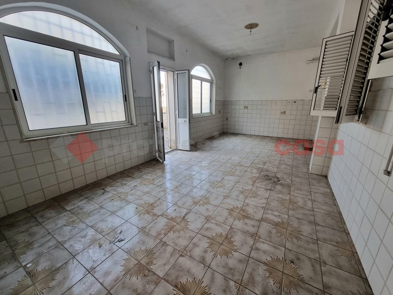 L'appartamento al primo piano è allo stato grezzo ed è composto da tre ambienti e un ampio terrazzo.