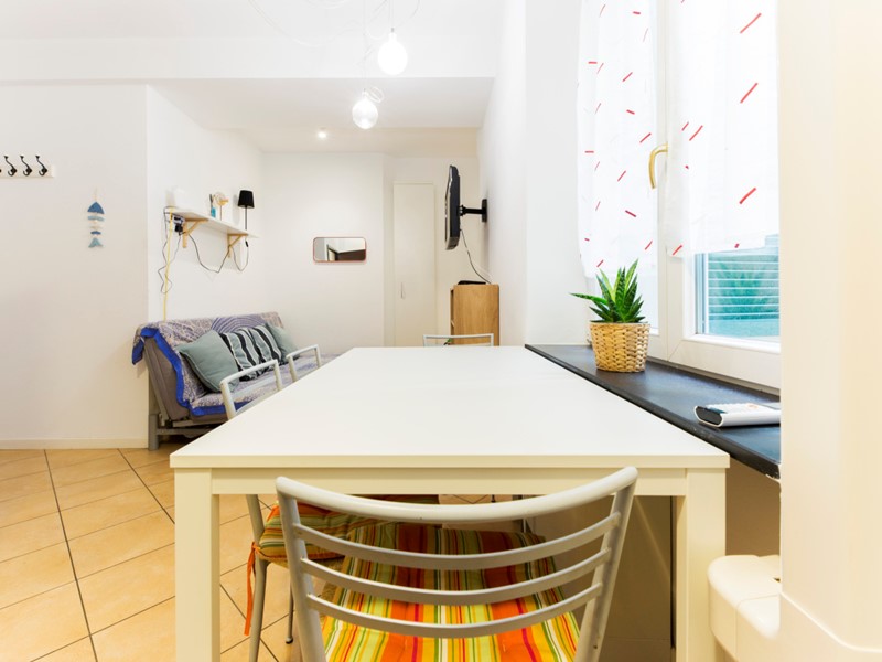 L'appartamento si compone di un ingressino presso il piccolo soggiorno con angolo cottura, una grande camera da letto, uno spazioso bagno finestrato ed infine un comodo ripostiglio.