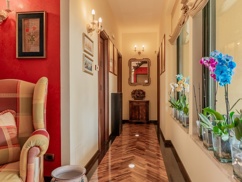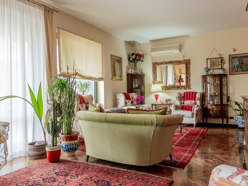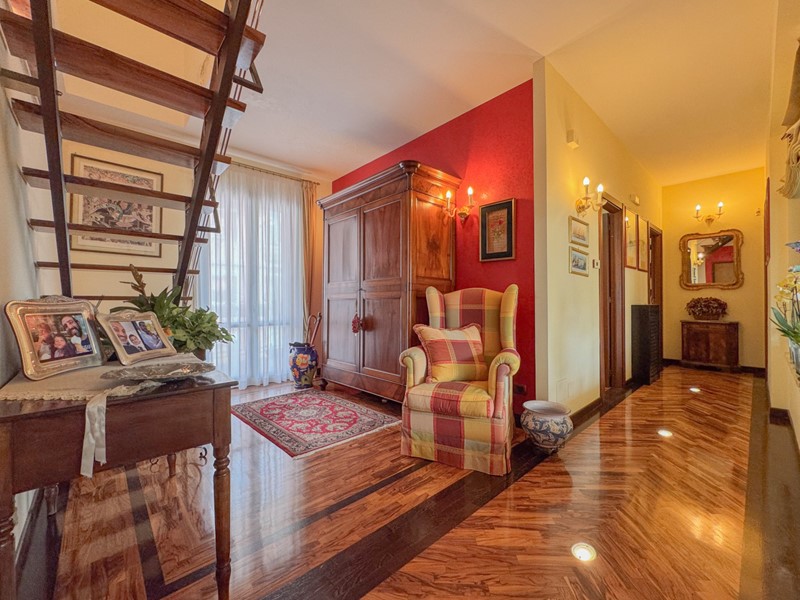 Varcata la soglia, si viene accolti da una zona giorno con parquet di ulivo meraviglioso. Le ampie vetrate inondano ogni angolo di luce naturale, creando un dialogo